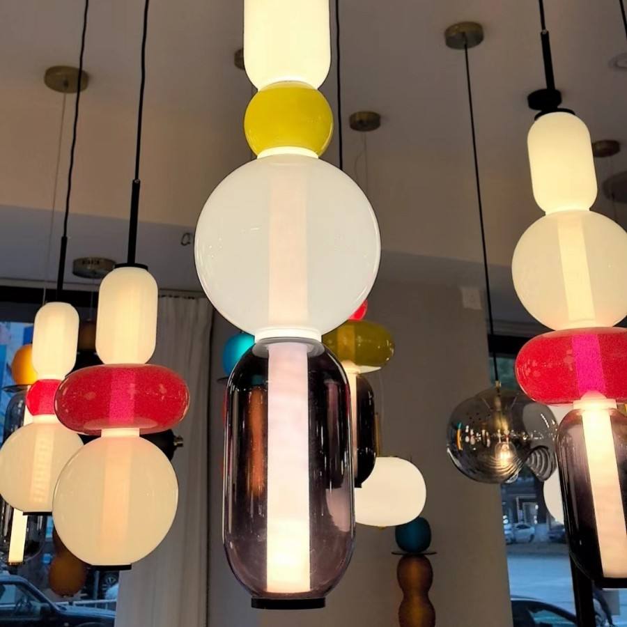 Lámpara colgante de cristal de Arte Moderno nórdico, cadena de calabaza de caramelo blanca cálida posmoderna para el hogar, cafetería, Club de ocio pequeño