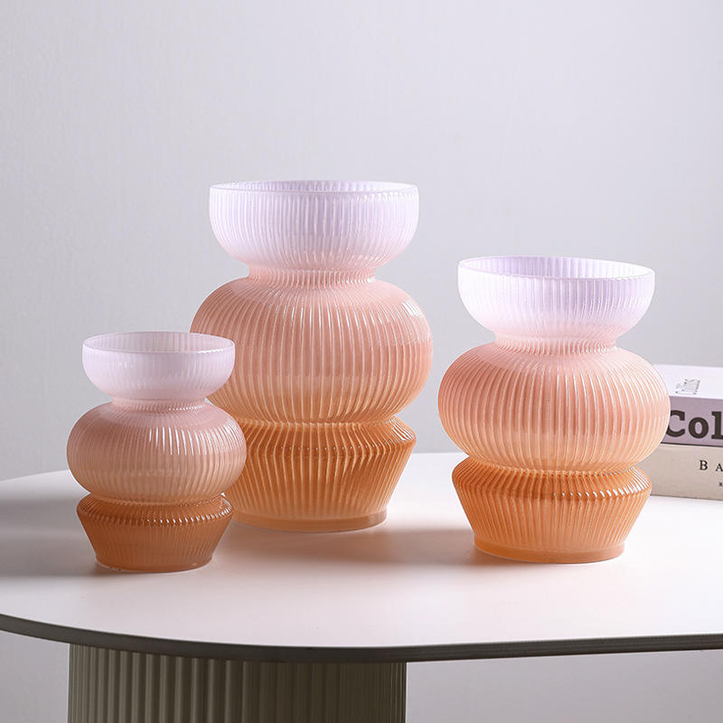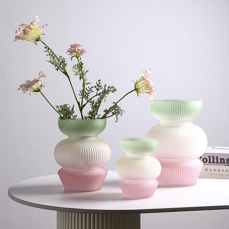 Jarrón de cristal moderno nórdico polvo degradado púrpura y verde para boda y sala de estar de Hotel florero hidropónico