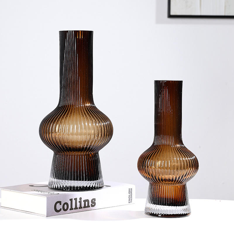 Jarrón de Vidrio Moderno Nórdico con Rayas, Decoración Interior de Lujo Ligero para Arreglos Florales en Bodas, Hogar o Sala de Estar