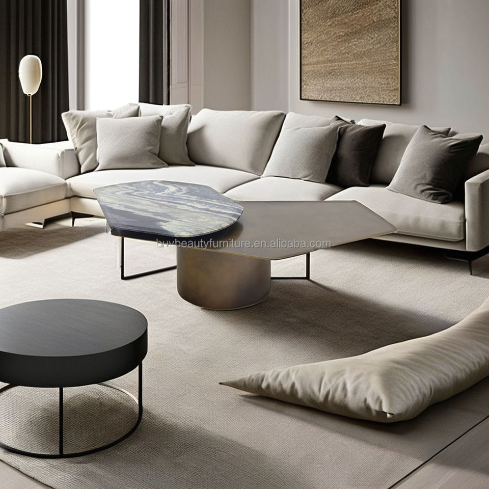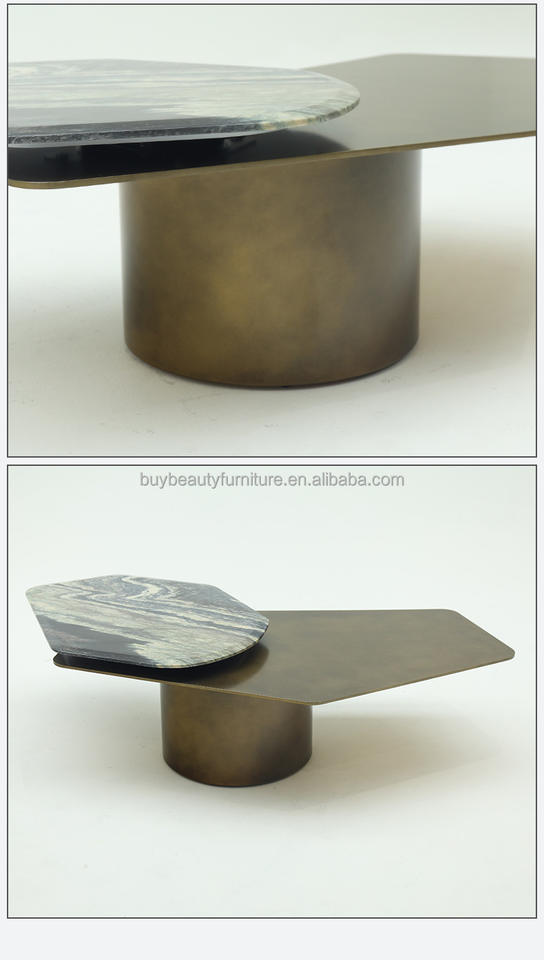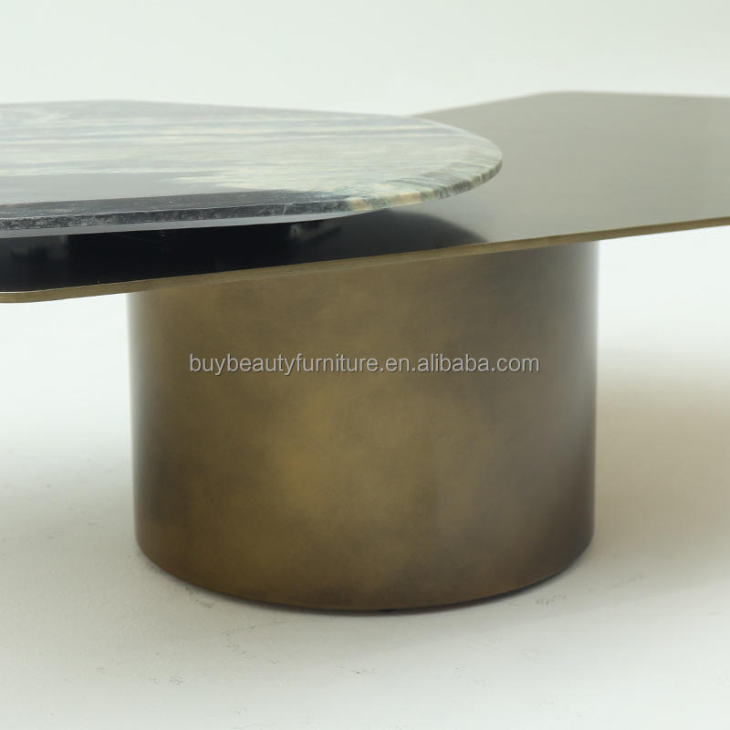Mesa auxiliar de estilo moderno nórdico, mesa de centro rústica de acero inoxidable de mármol natural dorado para sala de estar, muebles para el hogar, hierro