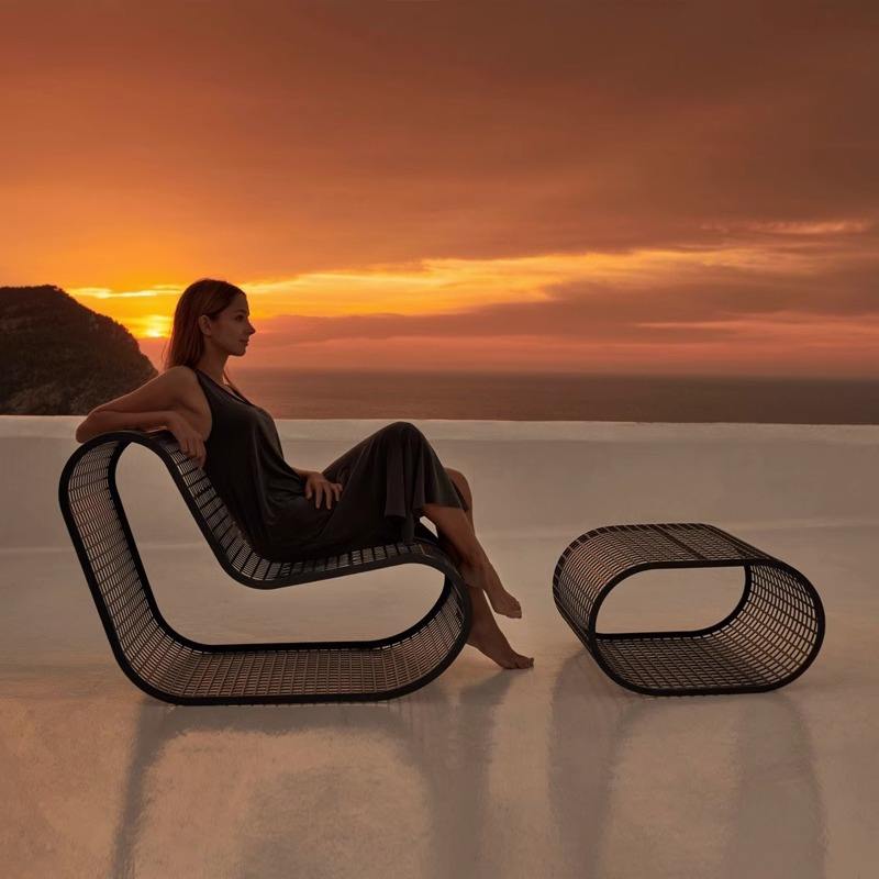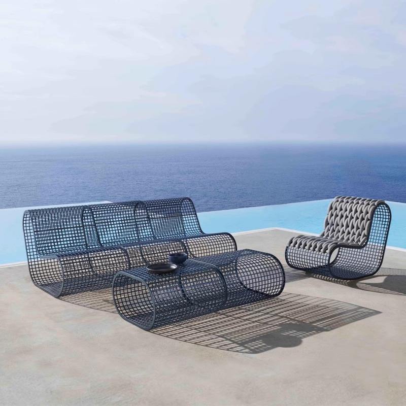 Sofá Nórdico de Exterior de una Plaza, 100% Olefina, Diseño Moderno para Jardín, Patio, Balcón, Tejido de Cuerda, Combinación con Características Perforadas