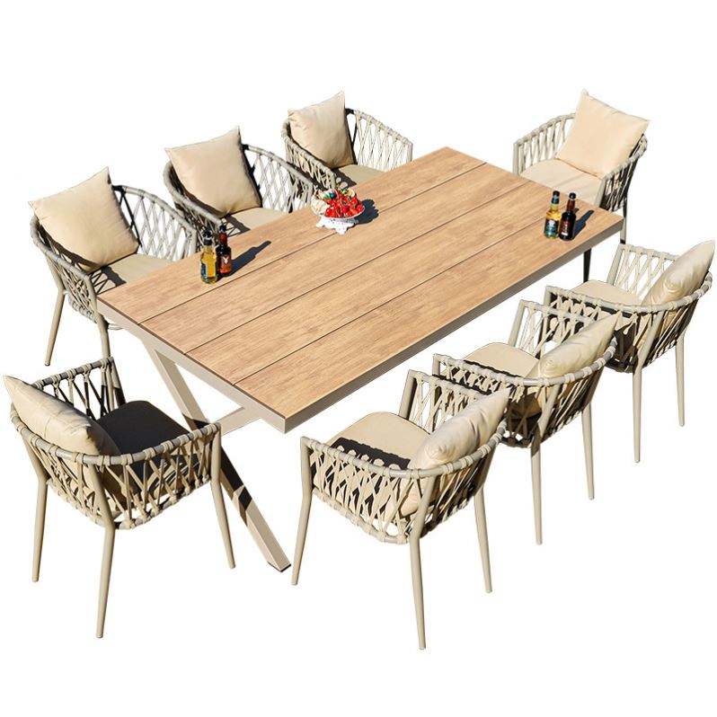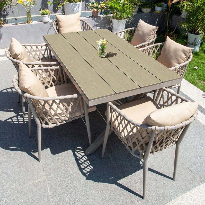 Mesas y sillas nórdicas para exteriores, Villa, patio, jardín, ratán, aleación de aluminio, ocio al aire libre, plástico Simple al aire libre