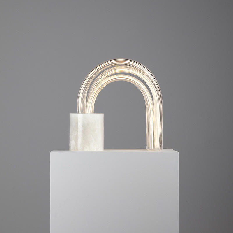 Lámpara de Mesa de Vidrio Creativa Posmoderna Nórdica, Minimalista, Arqueada, para Sala de Estar y Dormitorio, Producto de Diseño para Exhibición