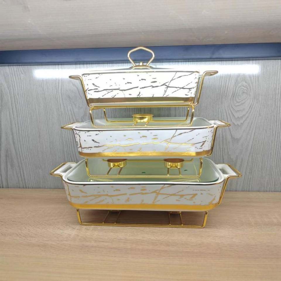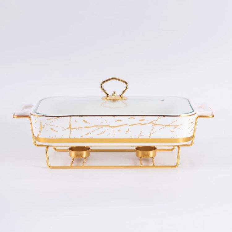 Olla Nórdica Rectangular de Cerámica con Doble Asa para Sopa, Soporte Moderno para Hotel, Plato Creativo para Hornear con Vela de Bajo Calor