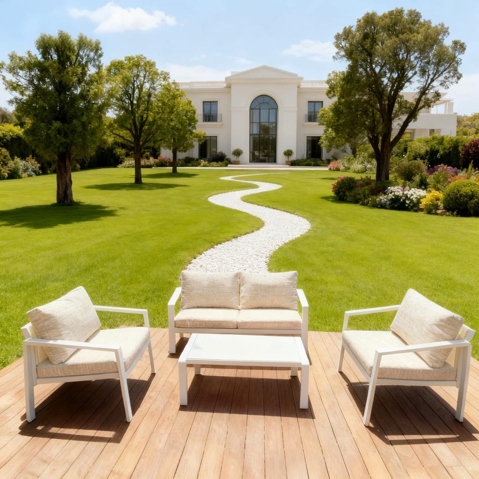 Sofá de aluminio tejido de malla de dos plazas de tamaño pequeño nórdico, juego de sofá para balcón y jardín al aire libre