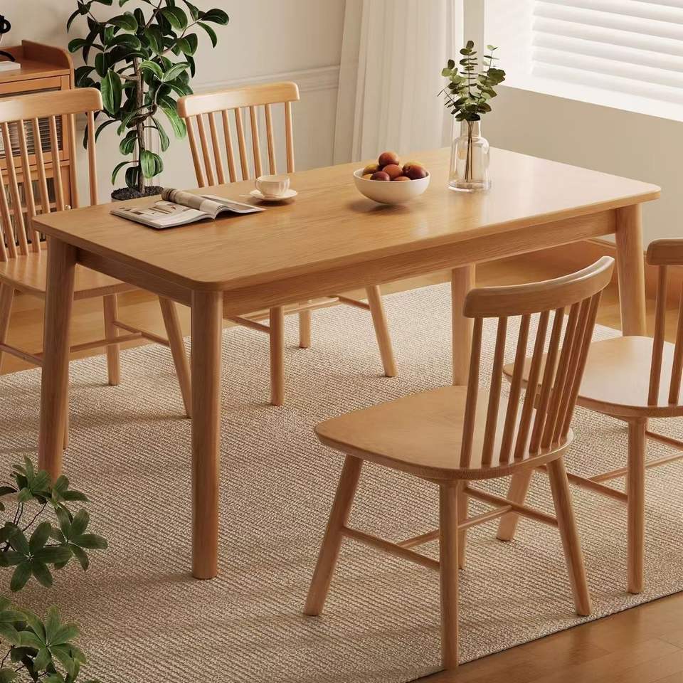 Juego de mesa de comedor nórdico de madera maciza de 4 piezas, rectangular, de diseño moderno y minimalista para comedor