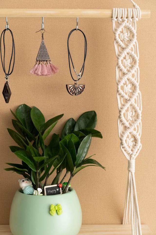 Estante de almacenamiento nórdico, colgador de plantas de estilo bohemio, estante colgante de macramé, carpeta de fotos
