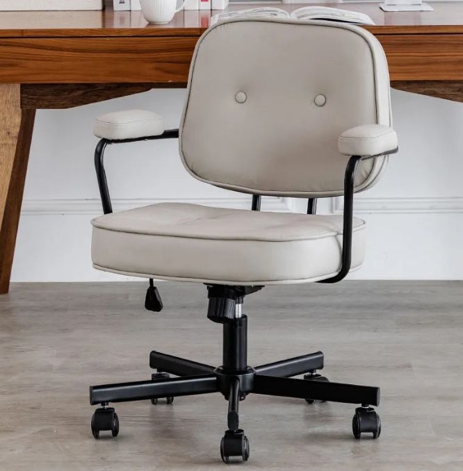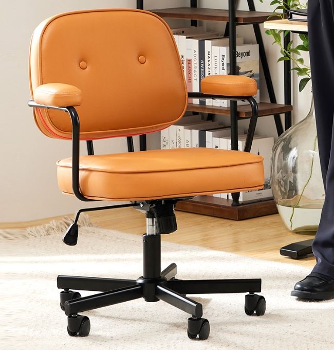 Silla de Escritorio Nórdica de Cuero Marrón, Silla de Oficina de Cuero Ajustable en Altura con Ruedas para el Hogar