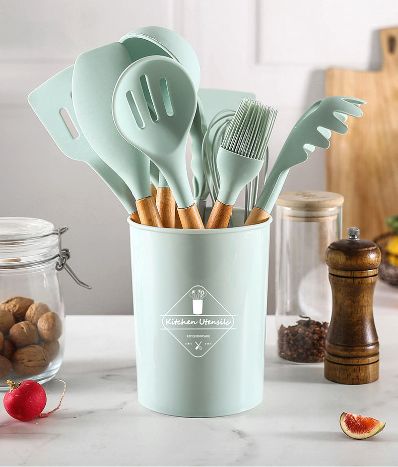Juego de Utensilios de Cocina de Silicona de Estilo Nórdico de 12 Piezas con Mangos de Madera - Utensilios y Accesorios para el Hogar
