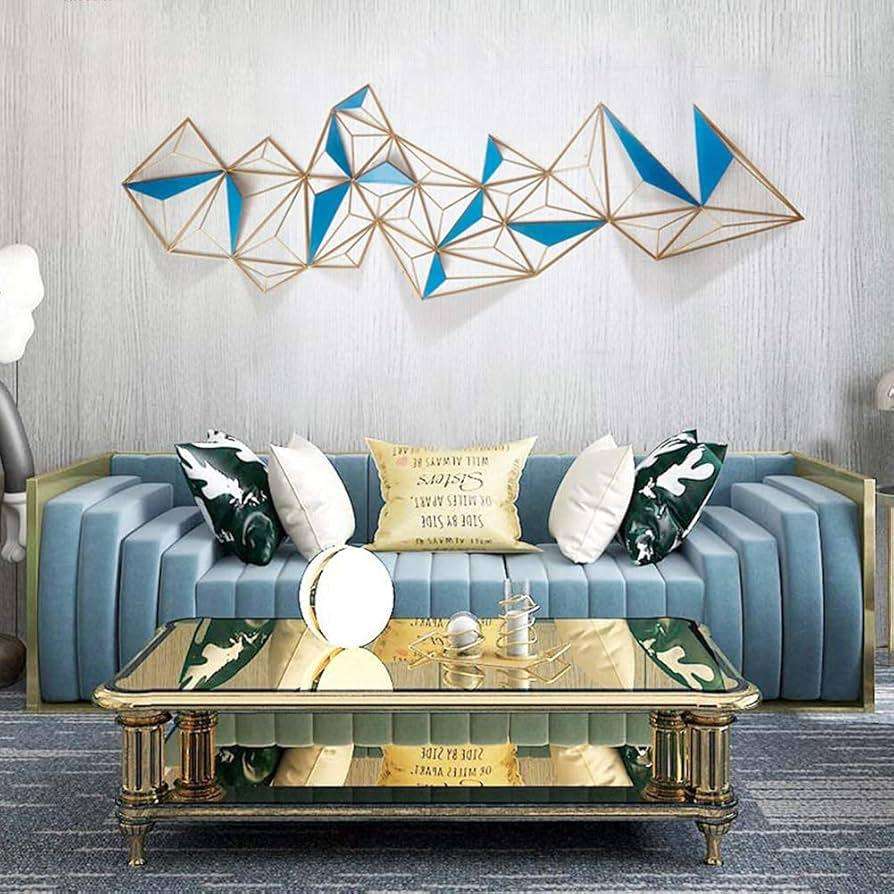 Geometría abstracta de estilo nórdico con decoración de Arte de alce Fondo de sala de estar pintura de cristal de pared con reloj