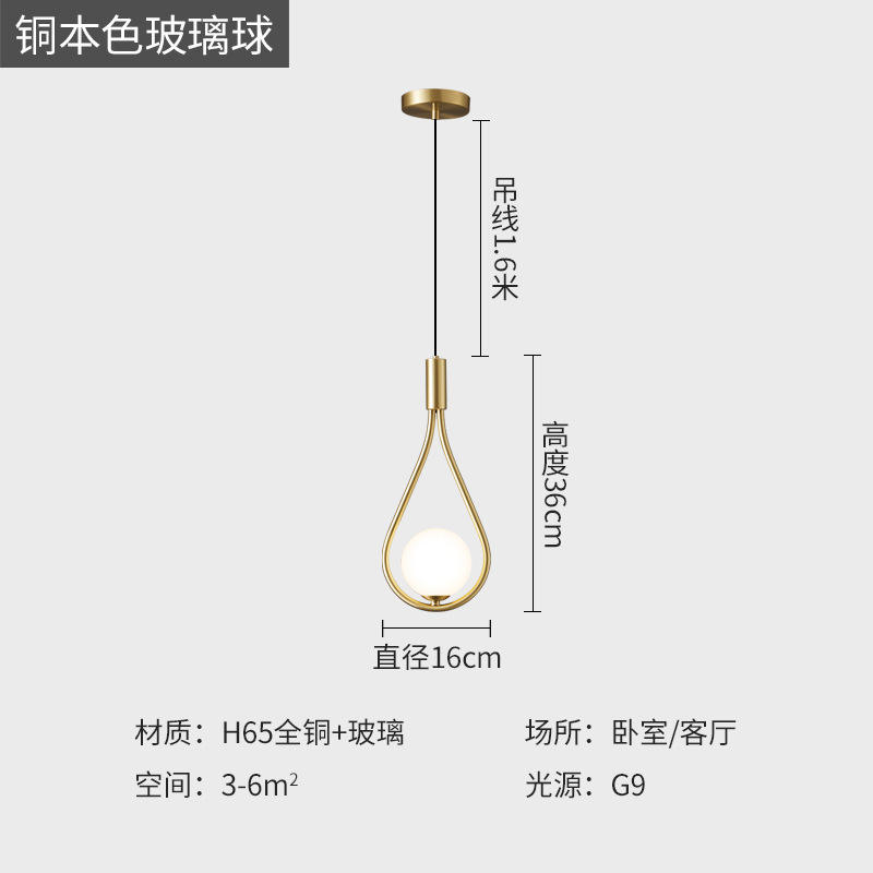 Lámpara Colgante de Cobre Estilo Nórdico, Lámpara de Techo de Cobre Negra de Una Sola Cabeza para Dormitorio, Lámpara de Noche Minimalista de Lujo para Comedor