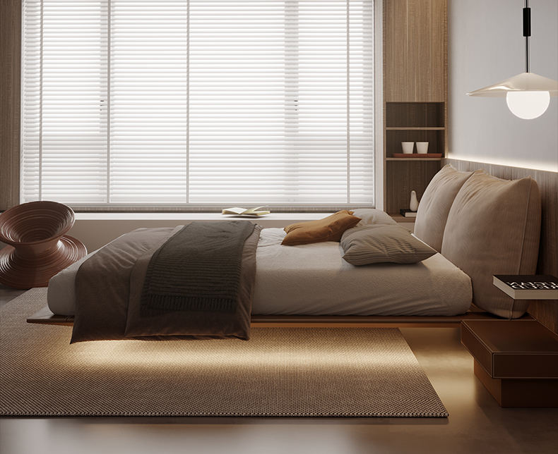 Marco de cama de estilo nórdico, cama de cuero, estilo nórdico, luz led de lectura de madera, mesita de noche para el hogar