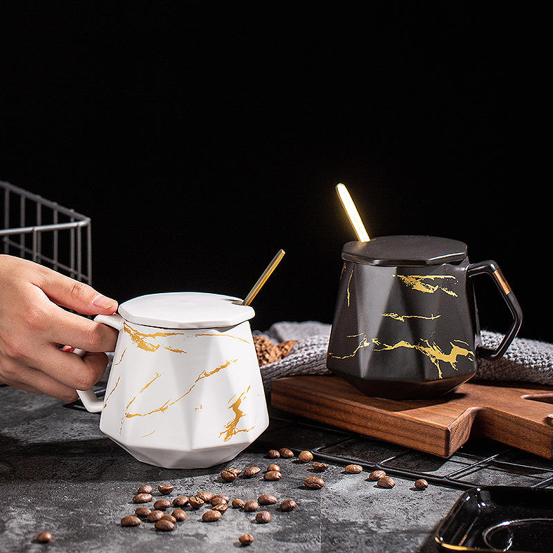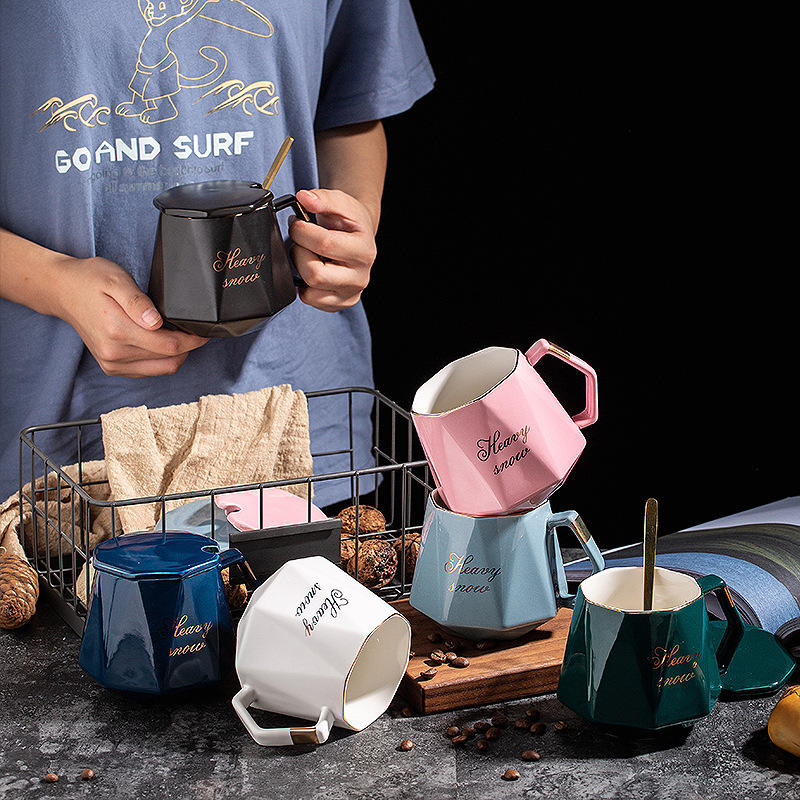Taza de cerámica estilo nórdico con tapa y juego de cuchara para café, té, regalo