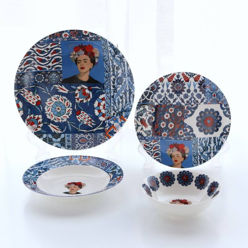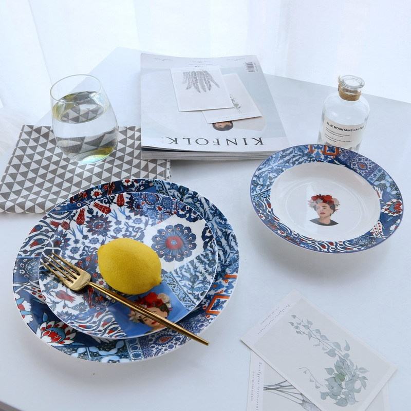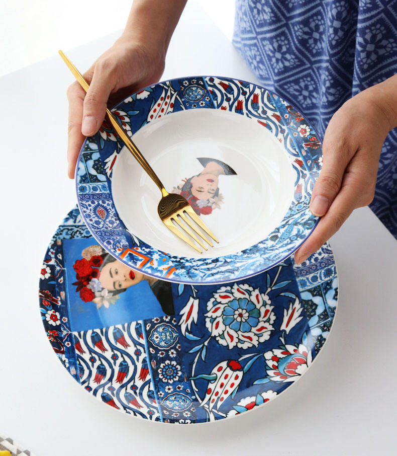 Juegos de vajilla de cerámica de estilo nórdico Juegos de platos de cerámica con arte facial de 4 piezas