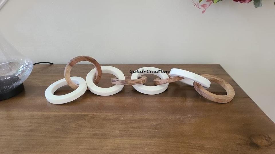 Cadena de eslabones decorativa de estilo nórdico en madera de acacia y mármol blanco para el hogar moderno y la decoración de mesa