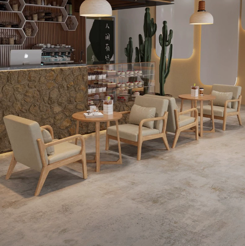 Juego de Muebles de Comedor Estilo Nórdico, Sillón de Madera Maciza y Sofá de Cuero