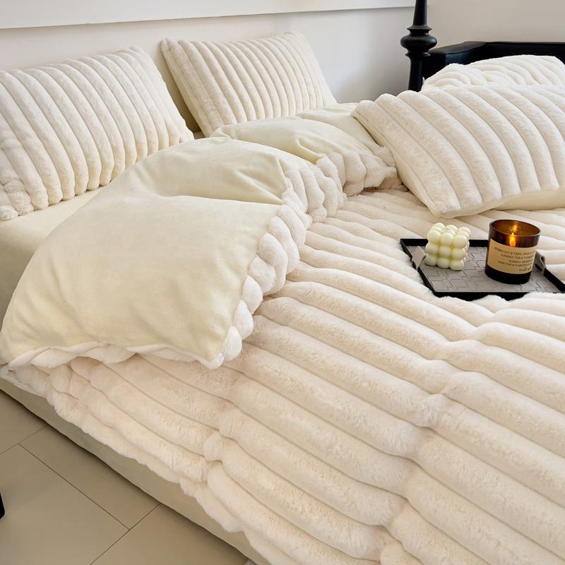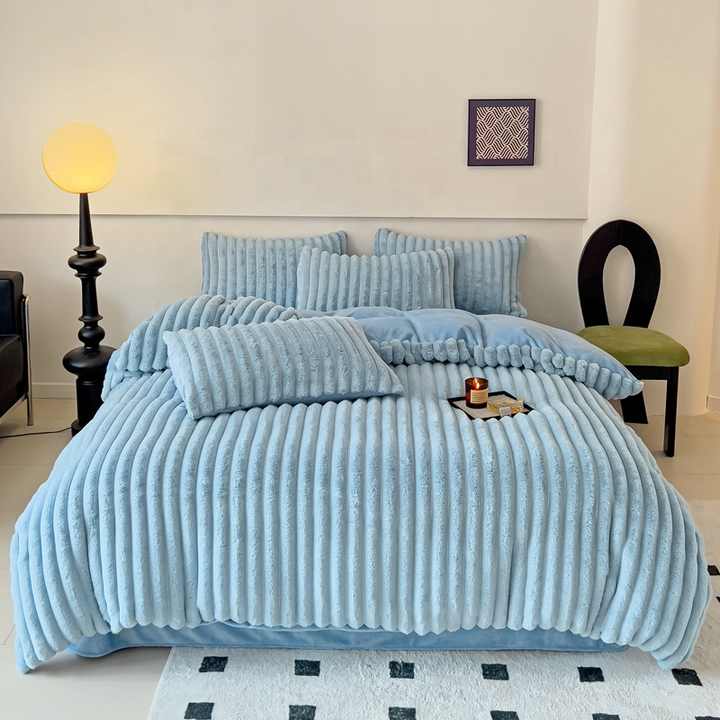 Juego de Sábanas de 4 Piezas de Felpa de Piel de Conejo Verde Estilo Nórdico