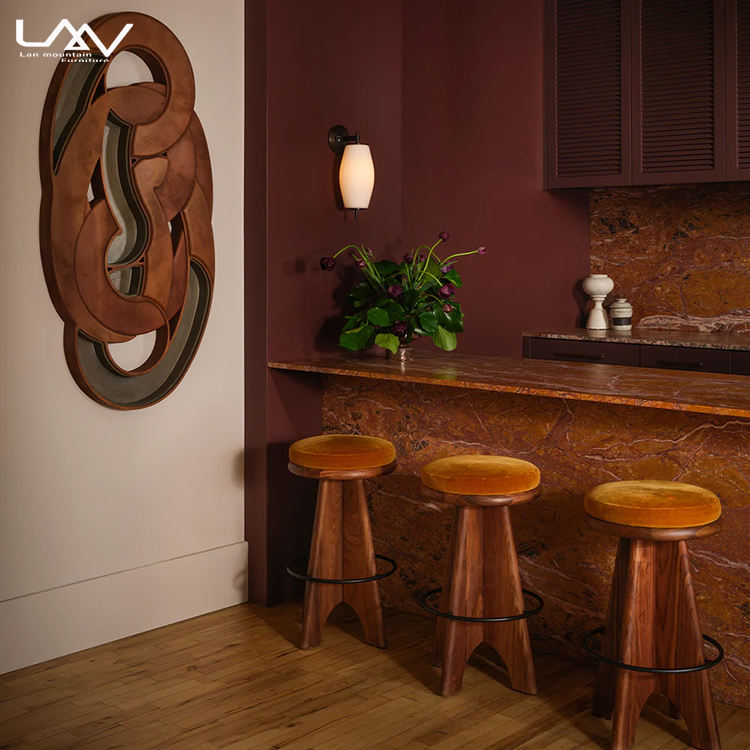 Taburete de bar de lujo color nogal para hotel y restaurante de estilo nórdico