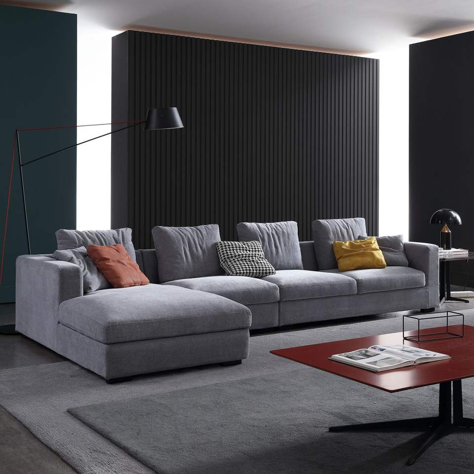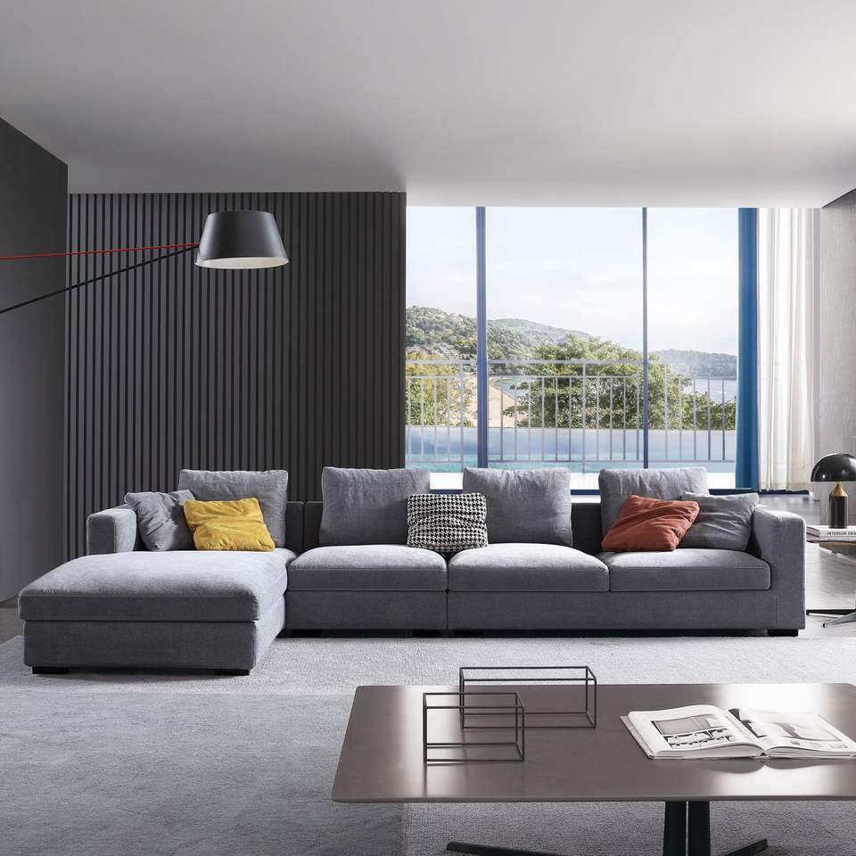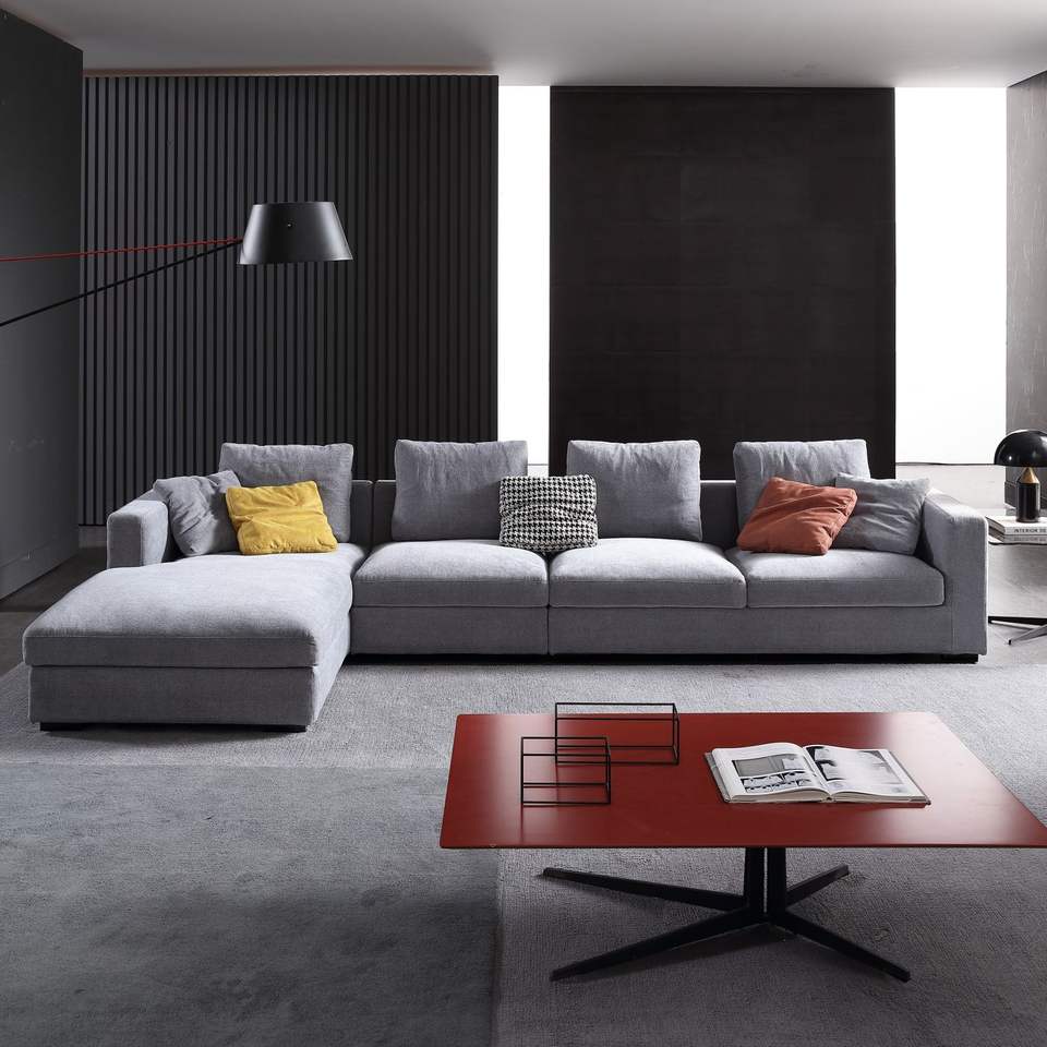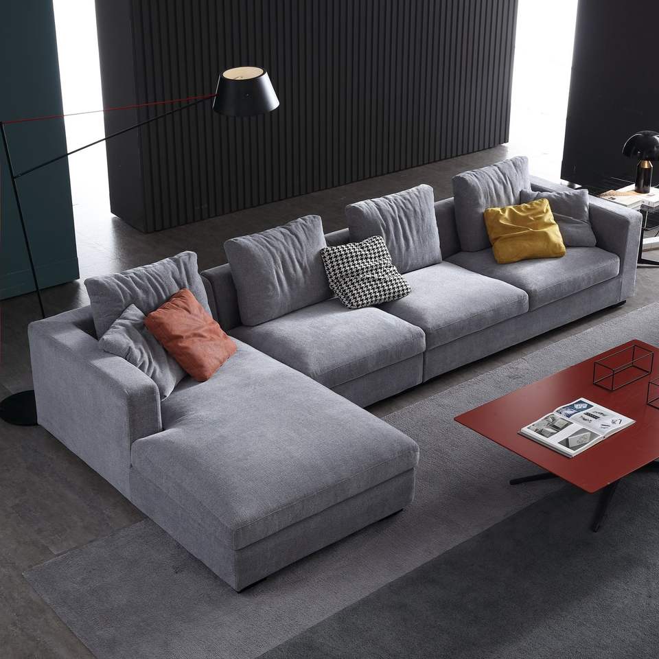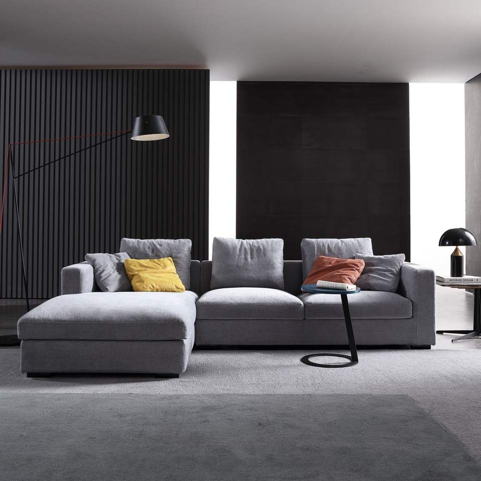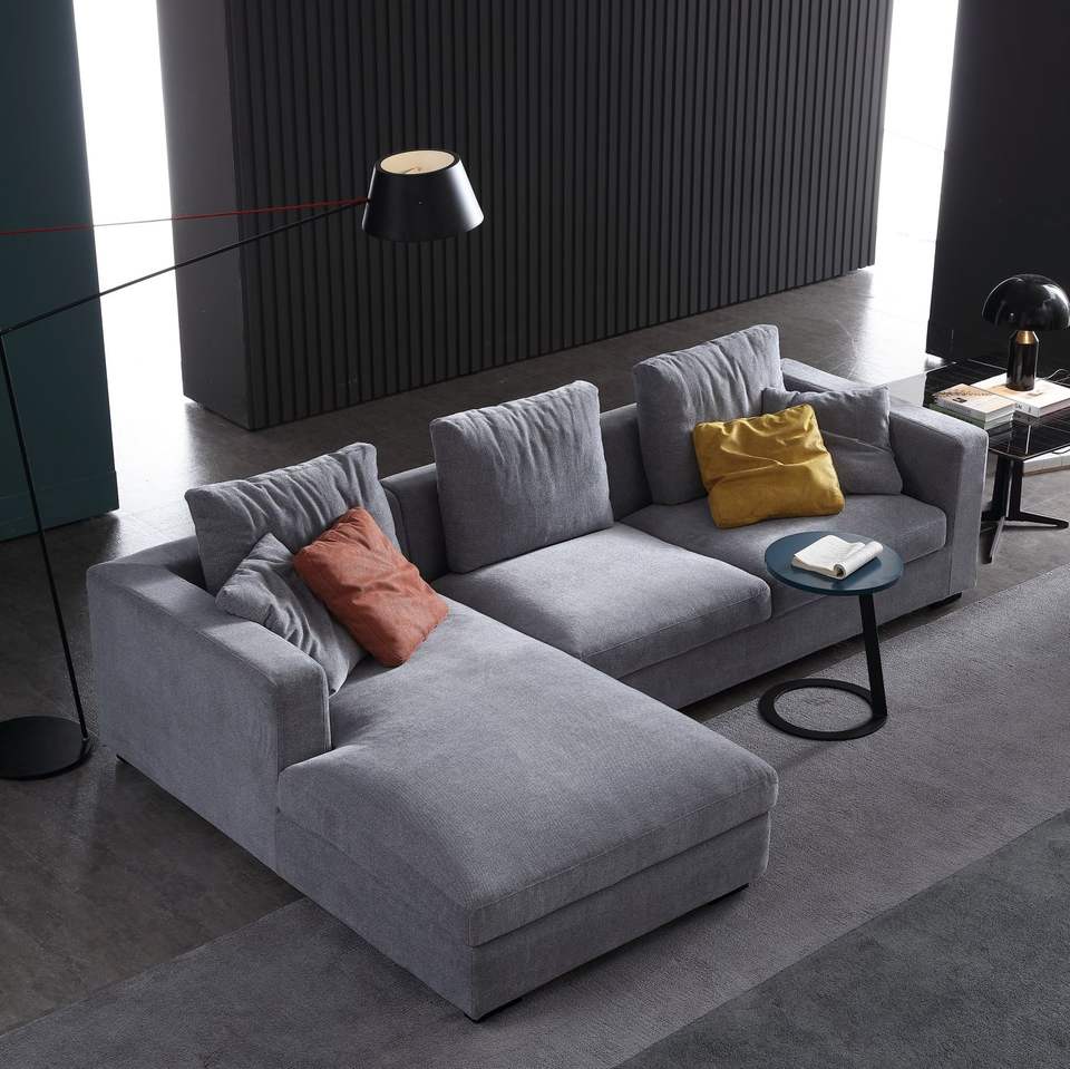 Sofá seccional modular en forma de L de estilo nórdico, sofá de esquina de tela de lino para sala de estar de lujo moderno