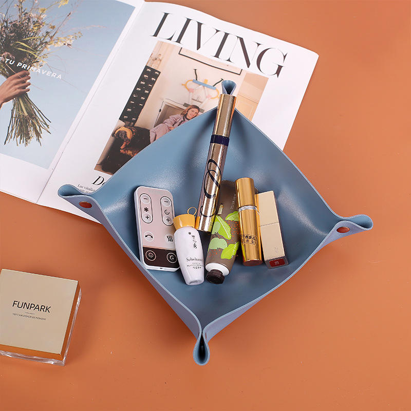 Bandeja de Almacenamiento de Cuero Estilo Nórdico, Organizador de Escritorio para Llaves, Joyas, Cosméticos, Caja de Almacenamiento Plegable, Decoración del Hogar