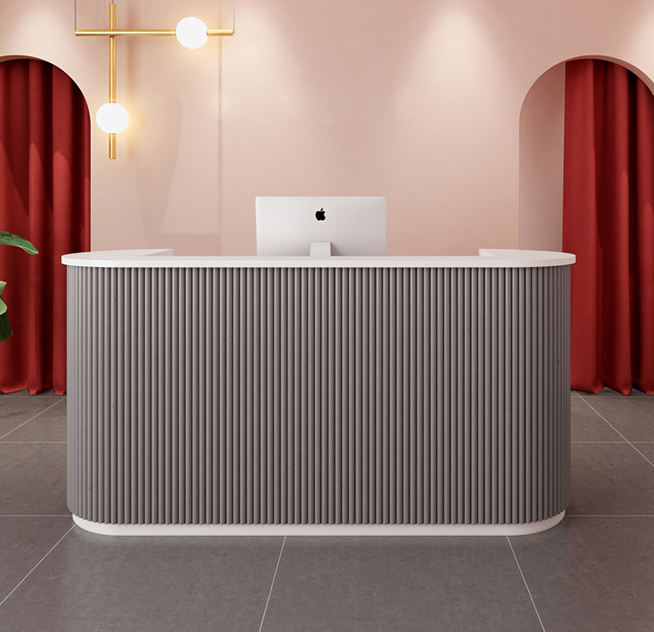 Juego de escritorio de ordenador ejecutivo moderno de estilo nórdico escritorios de recepción de madera de alto brillo en forma de i rosa y blanco para oficina Smart Home