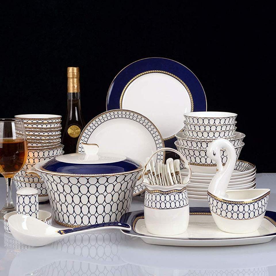 Juego de vajilla de porcelana estilo nórdico, platos y tazones de alta gama para uso diario en el hogar.