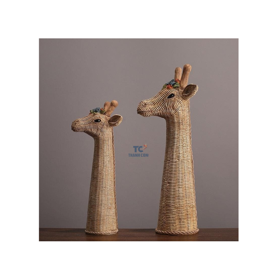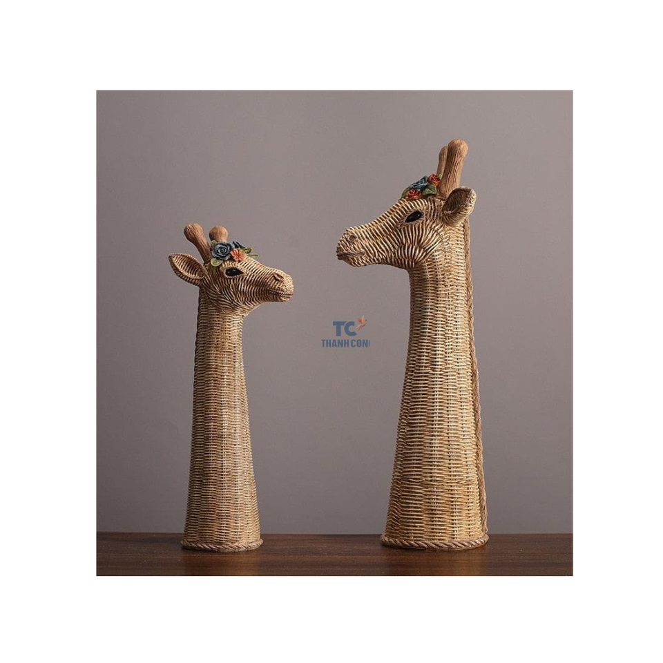 Estatua de jirafa de ratán de estilo nórdico, muebles creativos para el hogar, decoración artesanal para sala de estar, escultura de canework