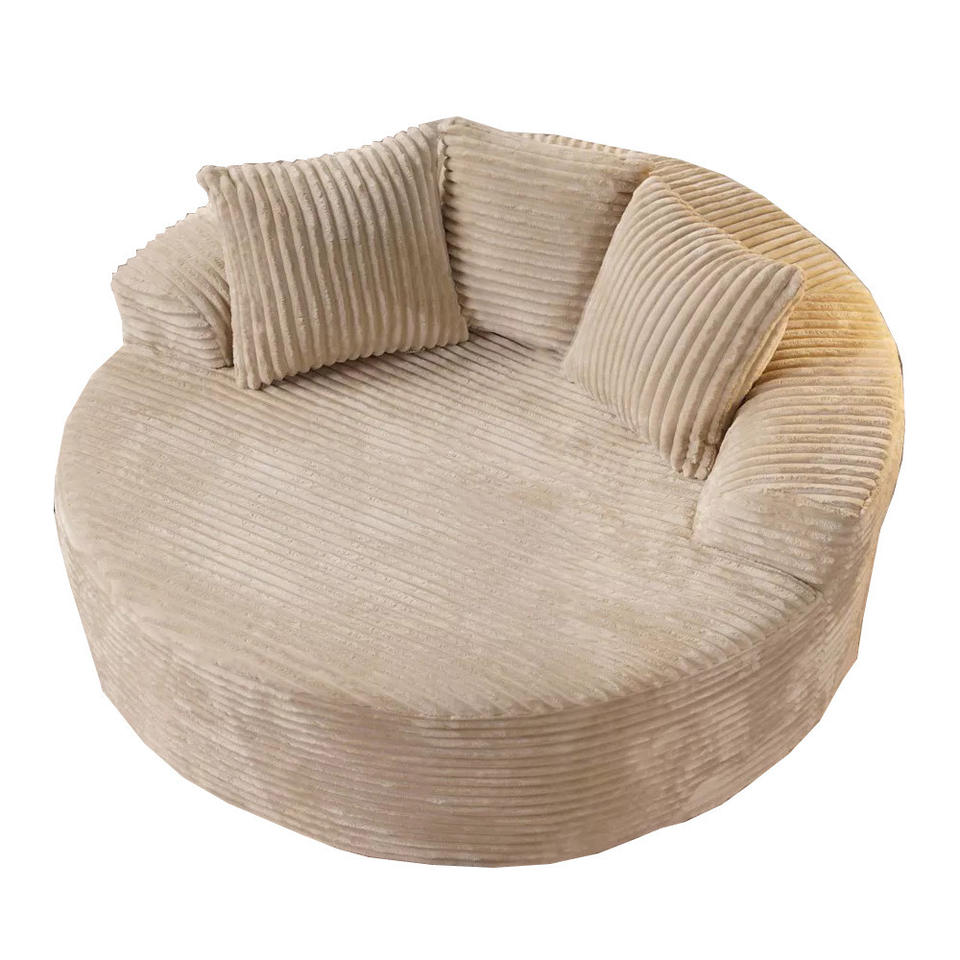 Sillón Puff Redondo de Espuma Estilo Nórdico, Color Gris Blanco Hueso, Sofá Cómodo para Sala de Estar, Adultos, Niños y Mascotas