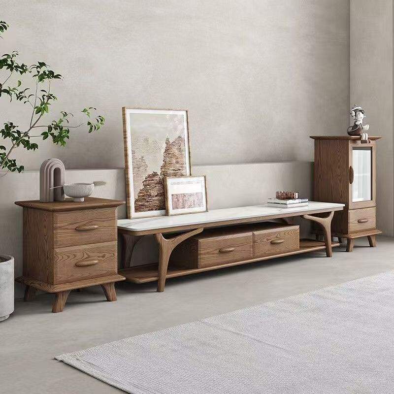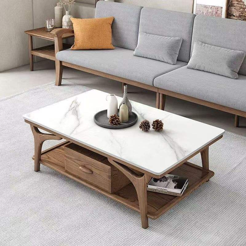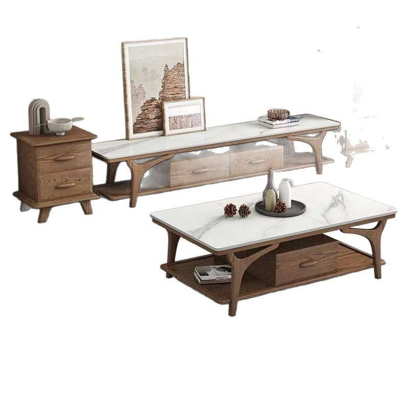 Mesa de centro y mueble para TV de madera maciza de estilo nórdico, combinación moderna minimalista de mármol y madera de fresno, juego de sala de estar con almacenamiento.