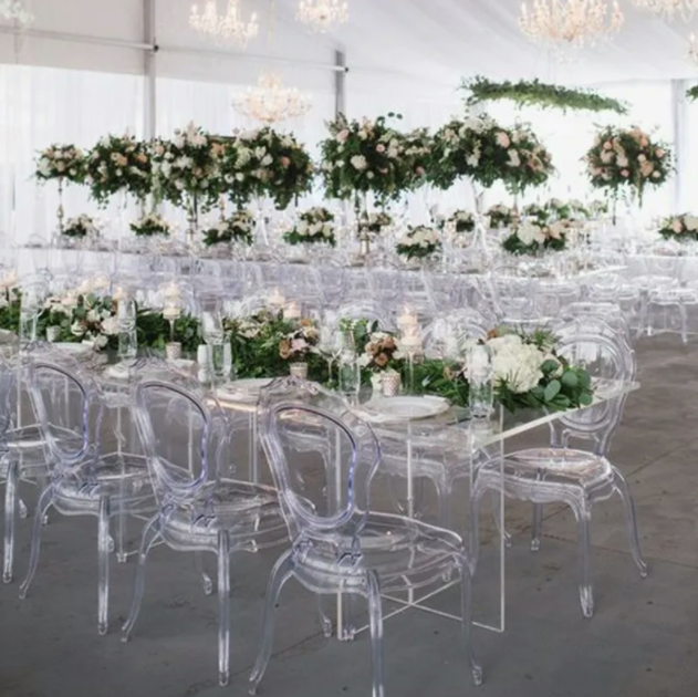 Silla de acrílico transparente de estilo nórdico para eventos para hoteles, bodas, capillas, restaurantes, cocinas, silla Napoleón moderna para banquetes