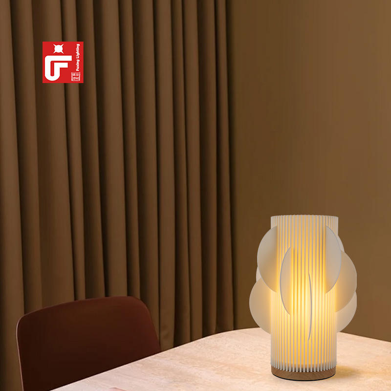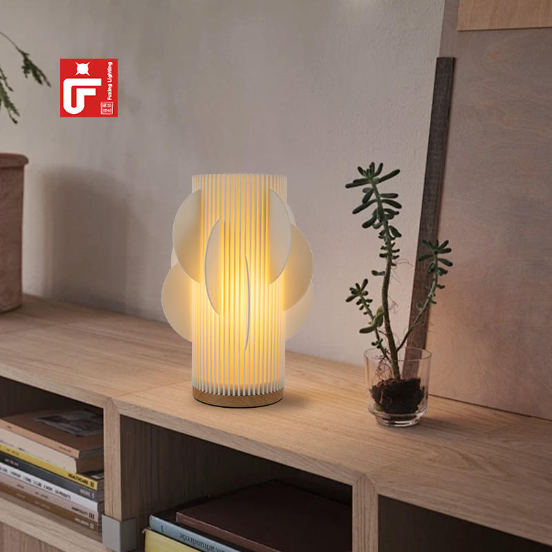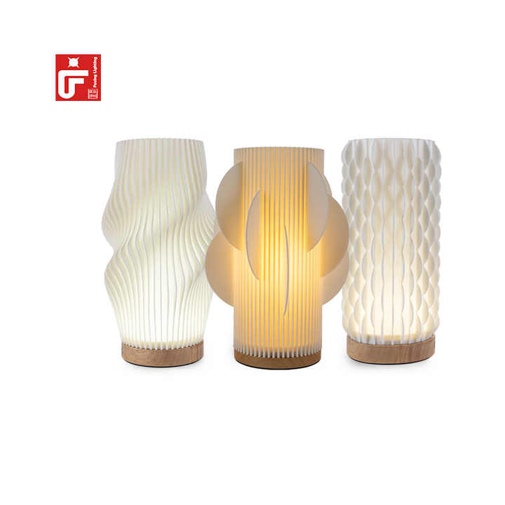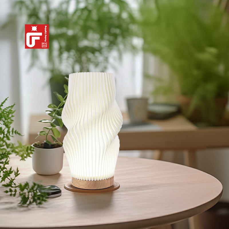 Lámpara de noche de forma única de estilo nórdico, Base de grano de madera de Metal, lámpara de mesa Led con volantes impresa en 3D creativa regulable Usb