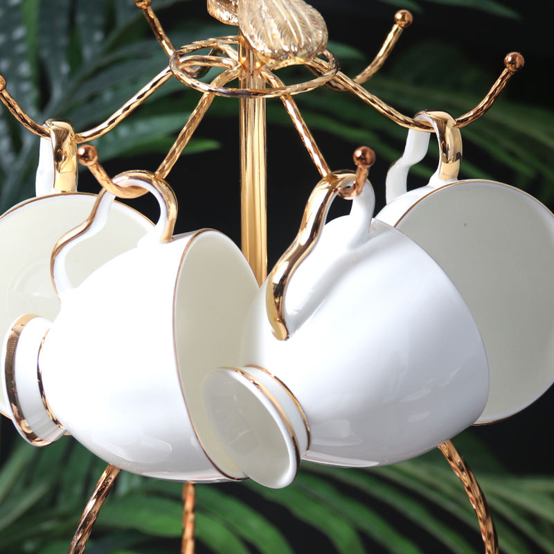 Juego de taza de café y platillo con borde de oro blanco de estilo nórdico, cerámica de China de hueso Simple al por mayor