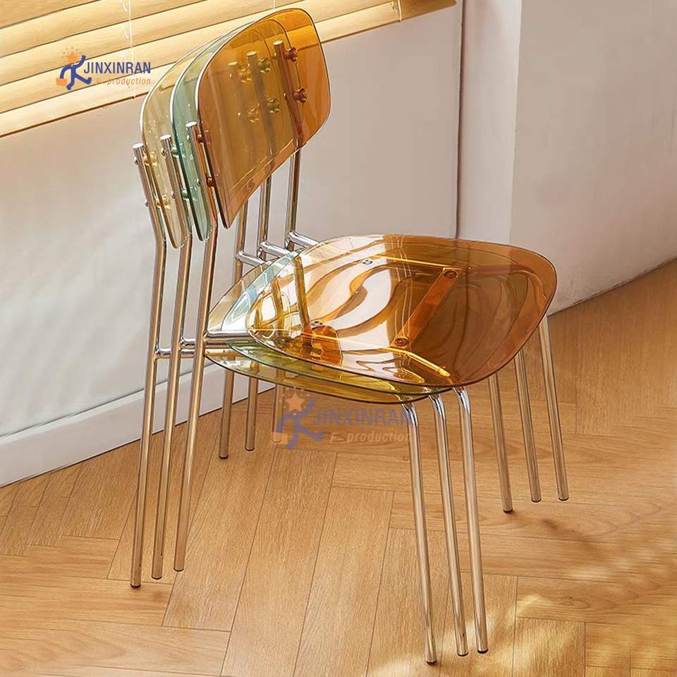Sillas de comedor de PC de Color transparente nórdico, silla de comedor de plástico acrílico apilable con patas cromadas para café, evento de boda