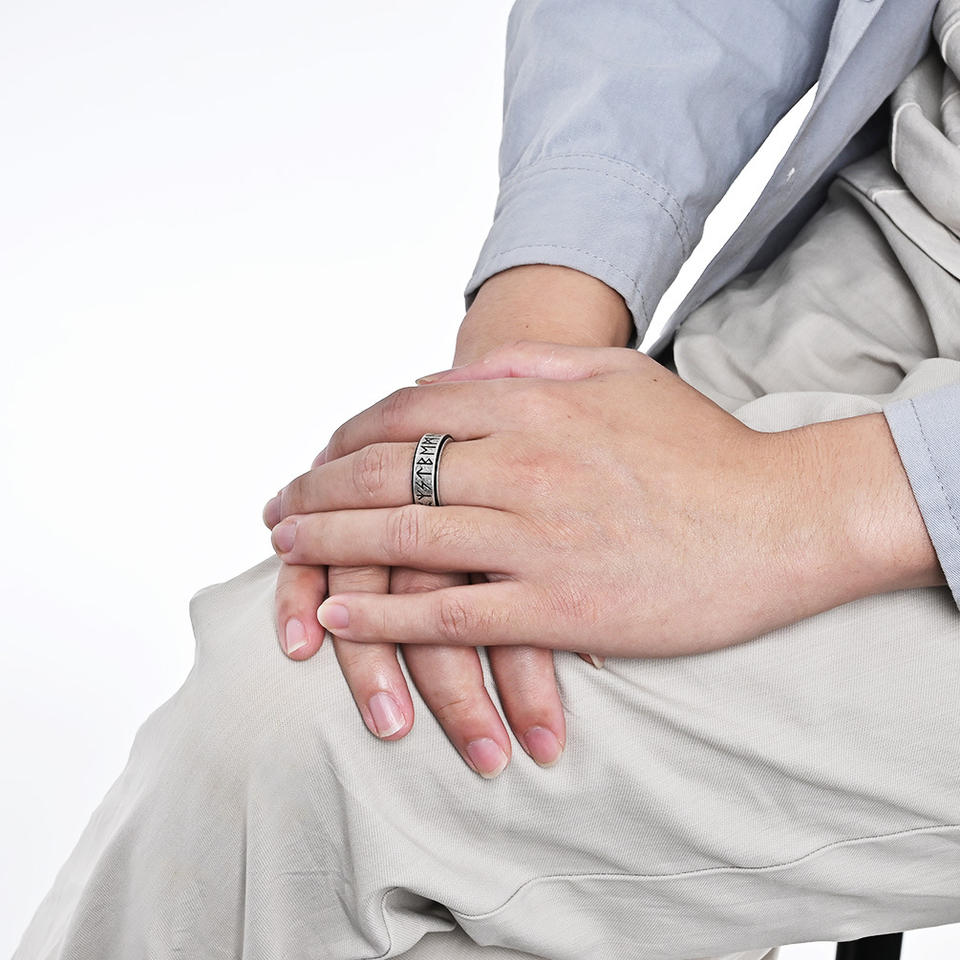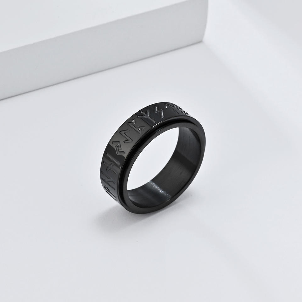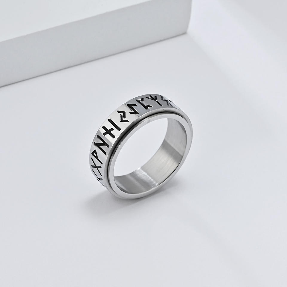 Anillo de acero de titanio con escritura vikinga nórdica para hombre, joyería para el dedo índice en plata antigua, oro y negro, regalo de estilo minimalista