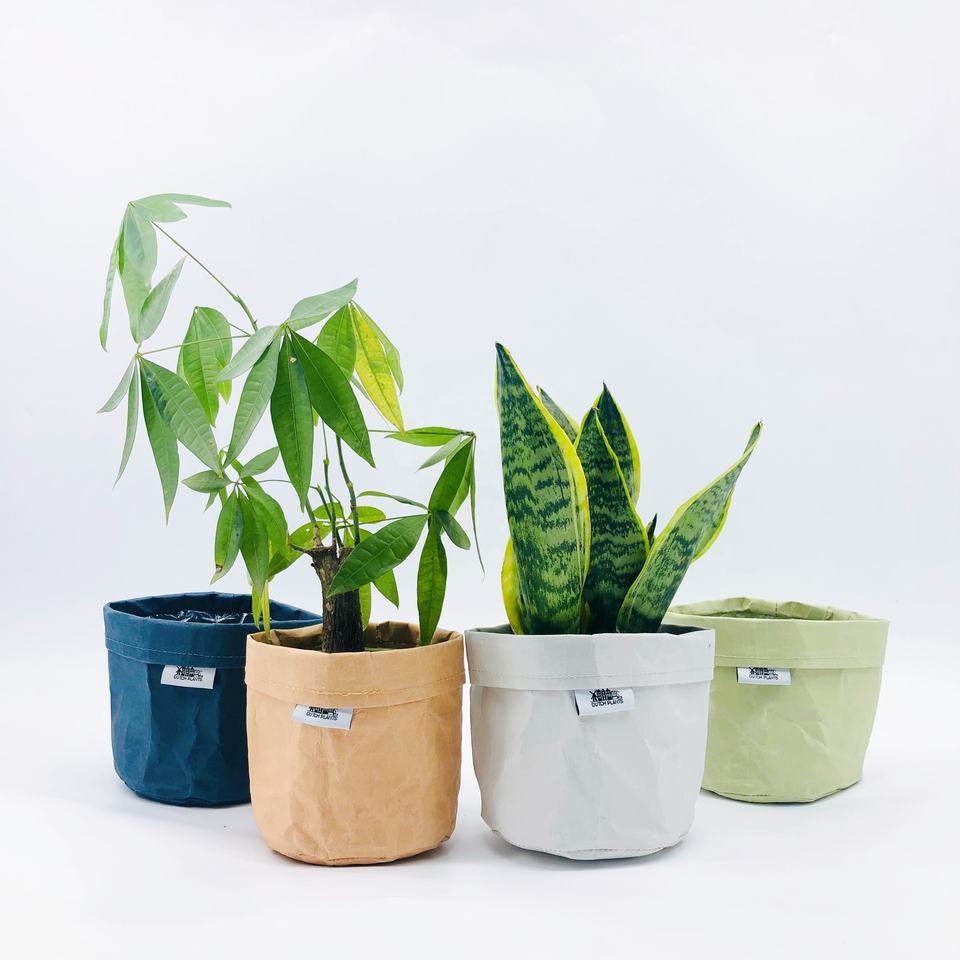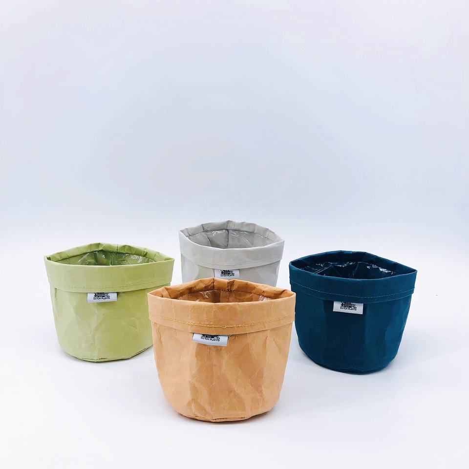 Europeo del norte reutilización cestas de pan de gran capacidad lavable kraft papel bolsas de almacenamiento de planta verde personalidad creativa maceta