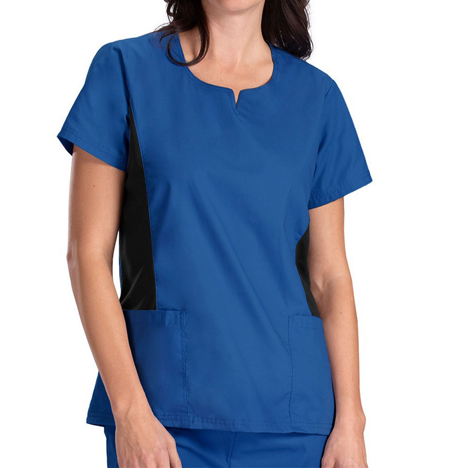 La parte superior con cuello en V de muesca cuenta con dos bolsillos ribeteados, un bucle de instrumento y respiraderos laterales con cierre a presión, enfermera Sexy Doctor Scrubs