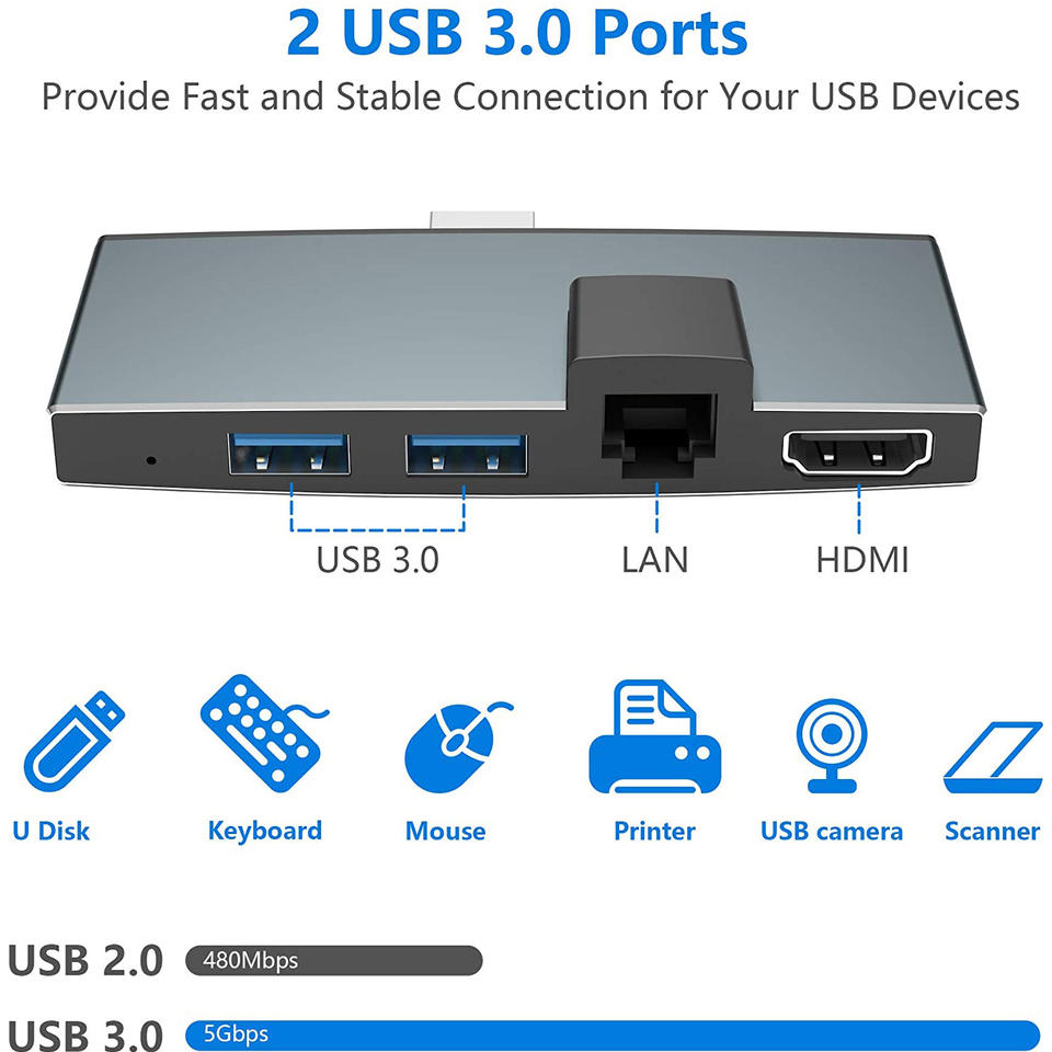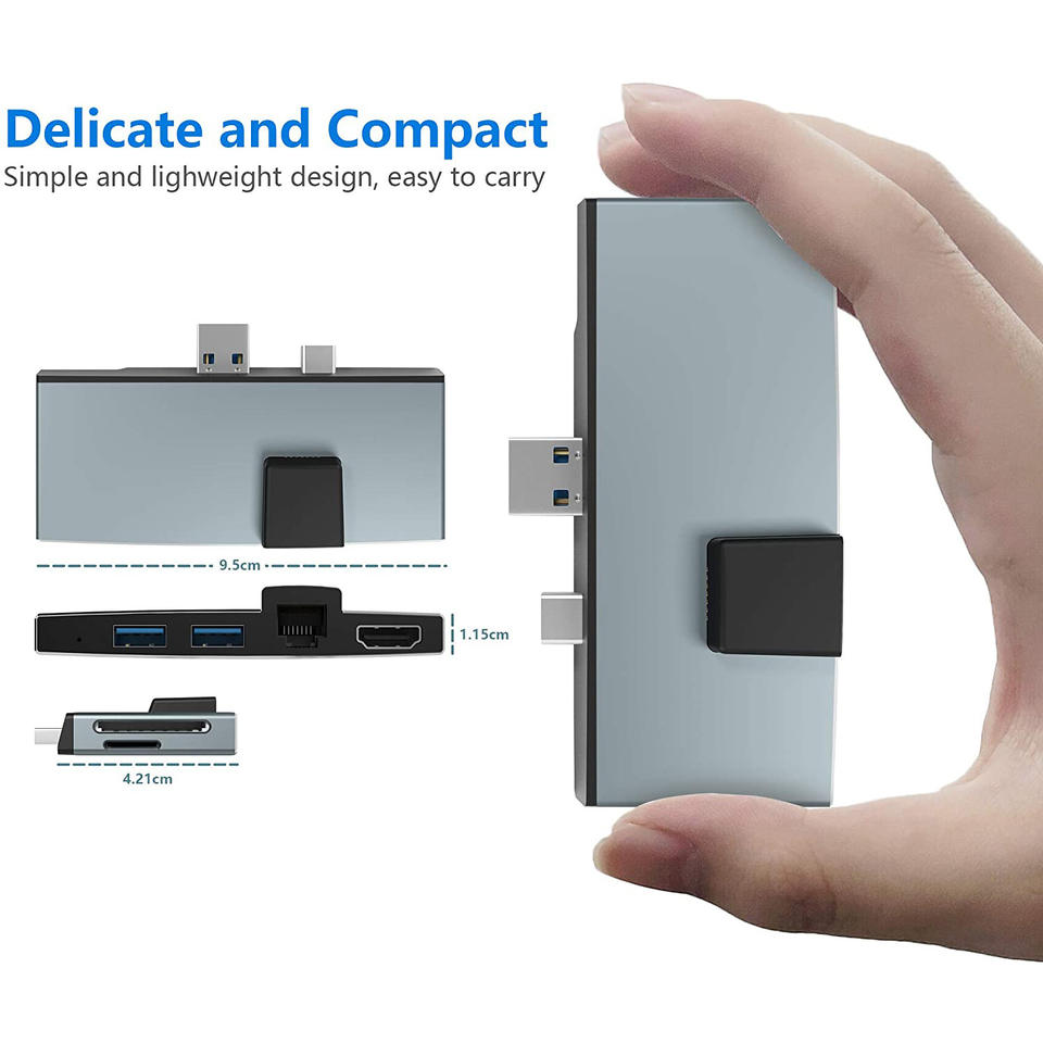 Convertidor portátil 6 puertos HUB Tipo C USB HUB USB 3,0*2 TF SD Tipo C 1000M megabit hub para Surface Pro 4/5/6