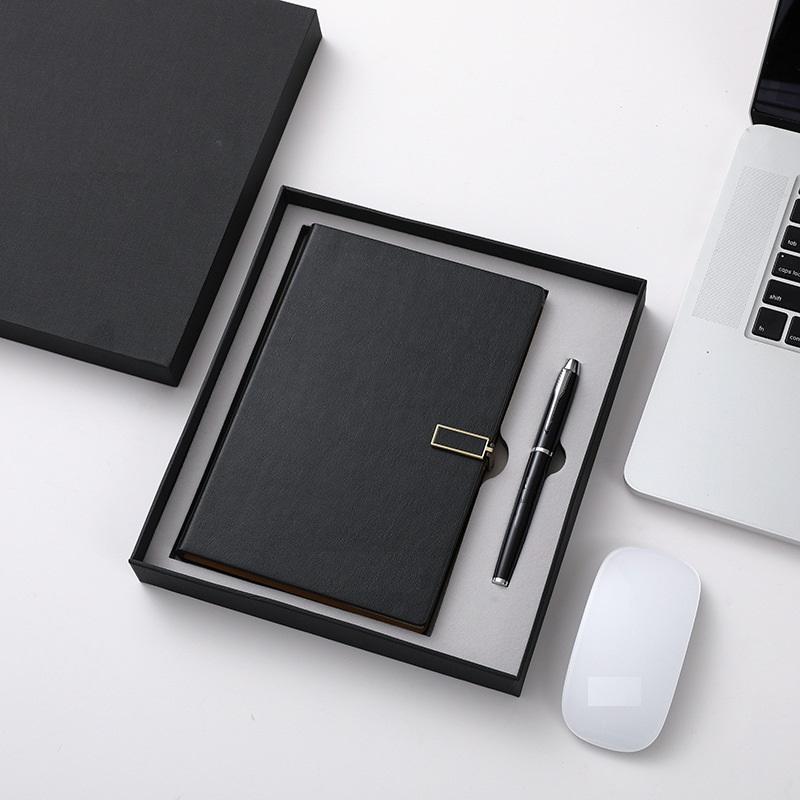 Cuaderno, pluma de la firma, caja de regalo, bolsa de regalo