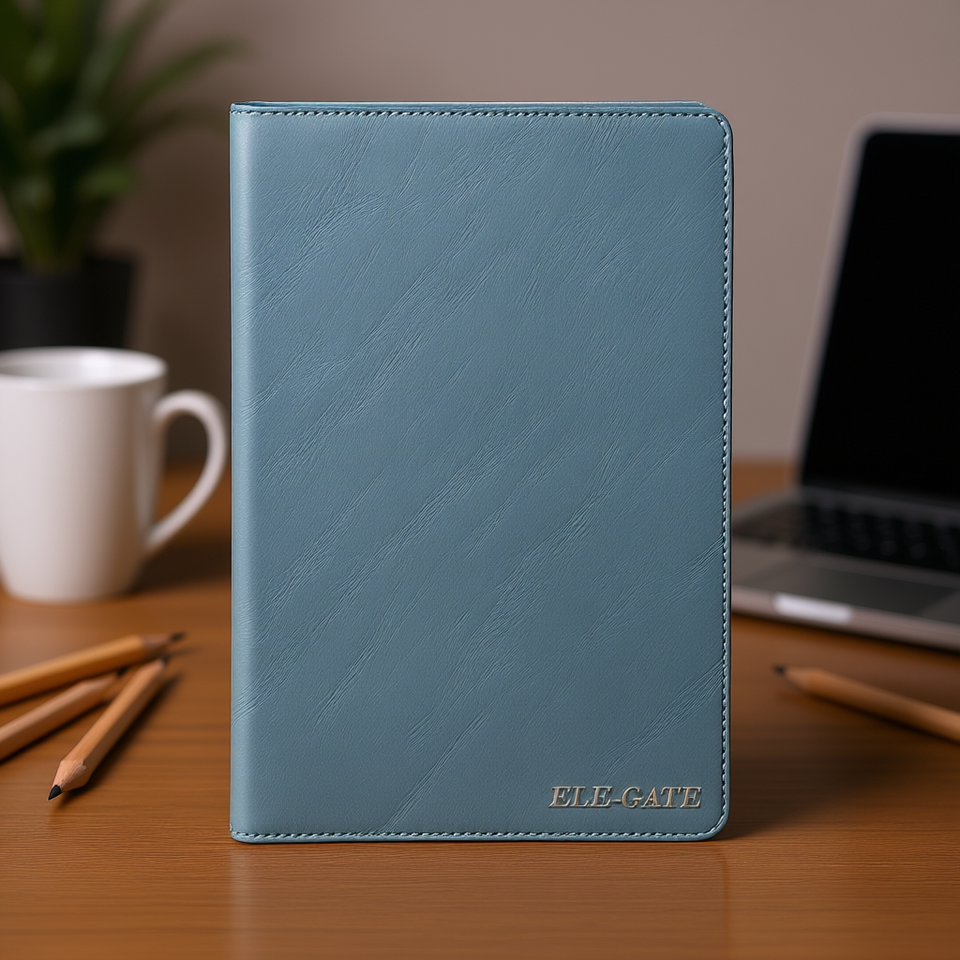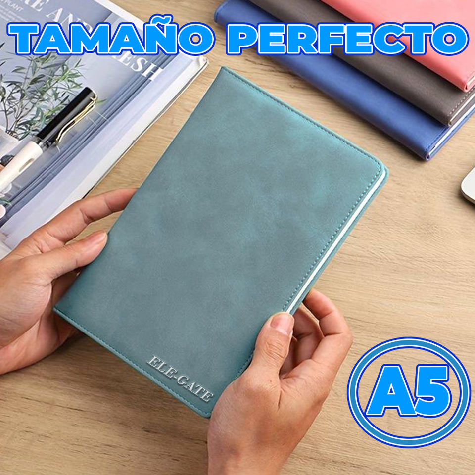Cuaderno Elegante Azul de Tapa Dura de Cuero con 120 Hojas, Encuadernación Cosida, Diseño Impreso Digital de México para Regalo por ELEGATE