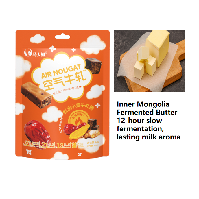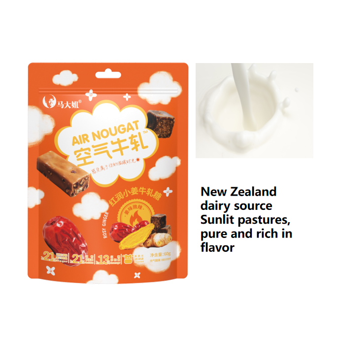 Caramelos de Turrón de Textura Suave, Color Rosa, Bolsa de 60g, Logotipo Personalizable, Relajante y Cálido, Salud Femenina, Desintoxicación Uterina, Sabor a Jengibre y Dátiles Rojos