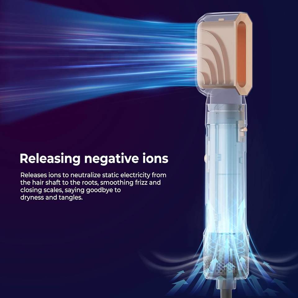 Secador de Pelo Novax de 7 Pulgadas y 1200W con Motor Iónico Sin Escobillas de Acero Inoxidable, Cepillo de Aire Caliente de Alta Velocidad, Peine Multiusos Francés
