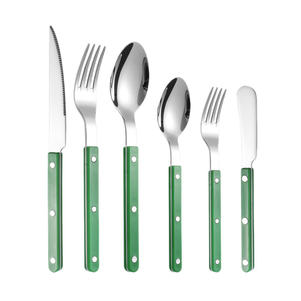 Novedoso remache Cubiertos Gordon Ramsay Set Acero inoxidable 304 Cubiertos ABS Mango de plástico Cubiertos ecológicos