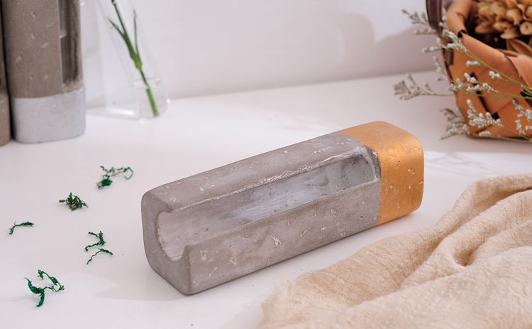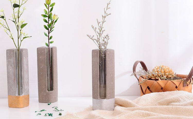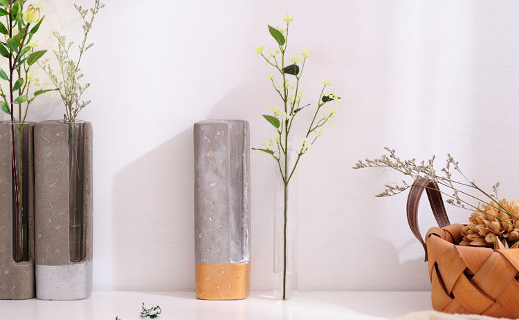 Macetero de mesa de tubo de ensayo de cemento de diseño novedoso, jarrón de vidrio de cemento de brotes rectangular de material mezclado #