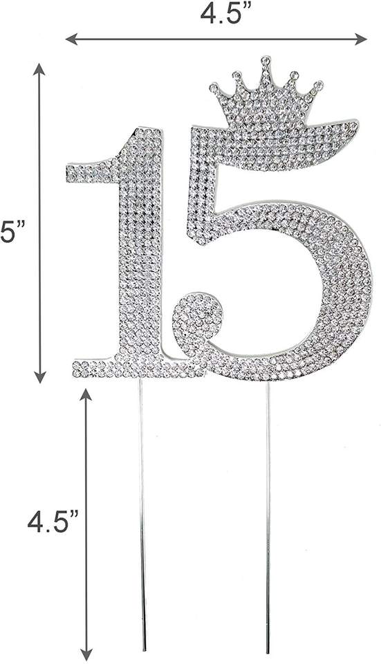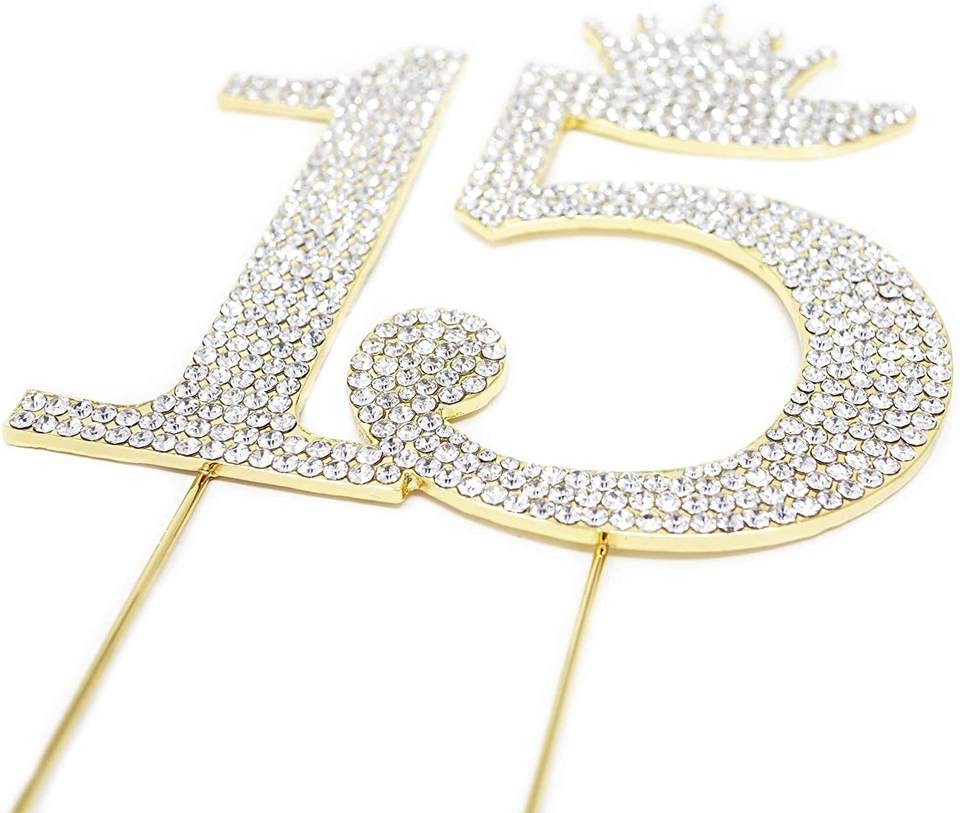 Decoración Número 15, Corona de Diamantes de Imitación para Pastel, Adorno para Pastel de 15 Años