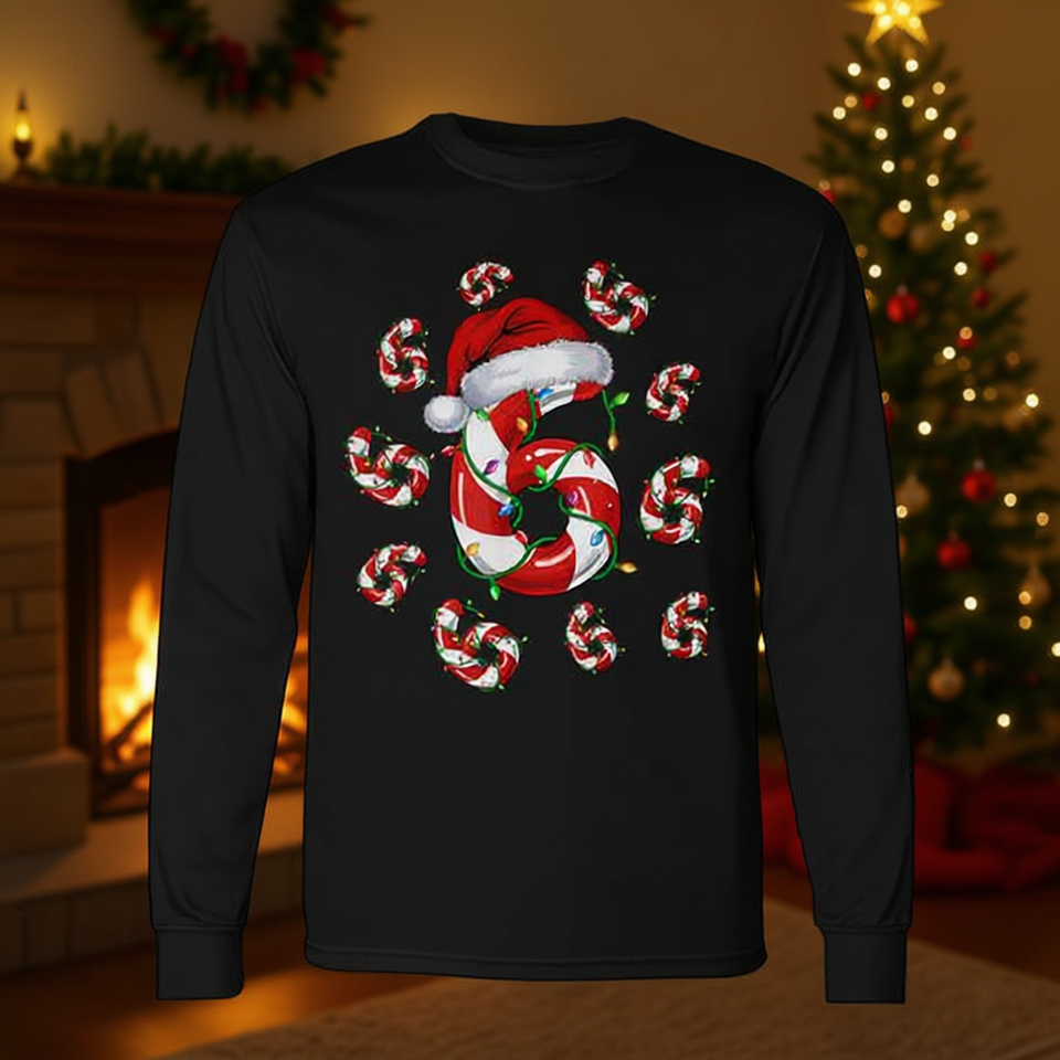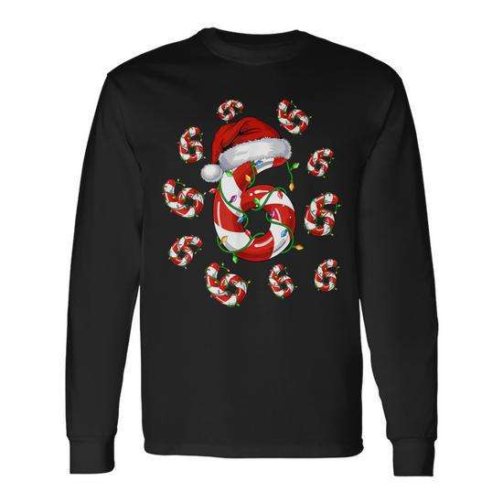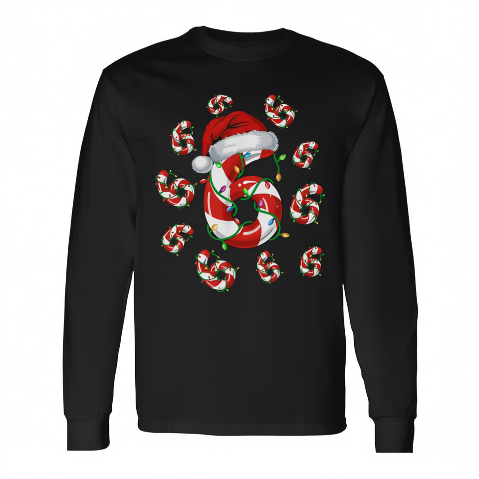 Camiseta navideña de manga larga con estampado de bastones de caramelo número 6, pijamas a juego con memes