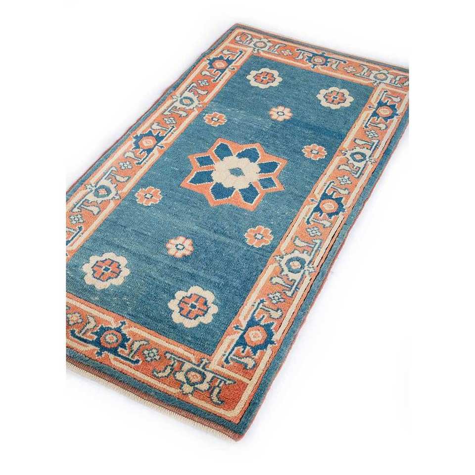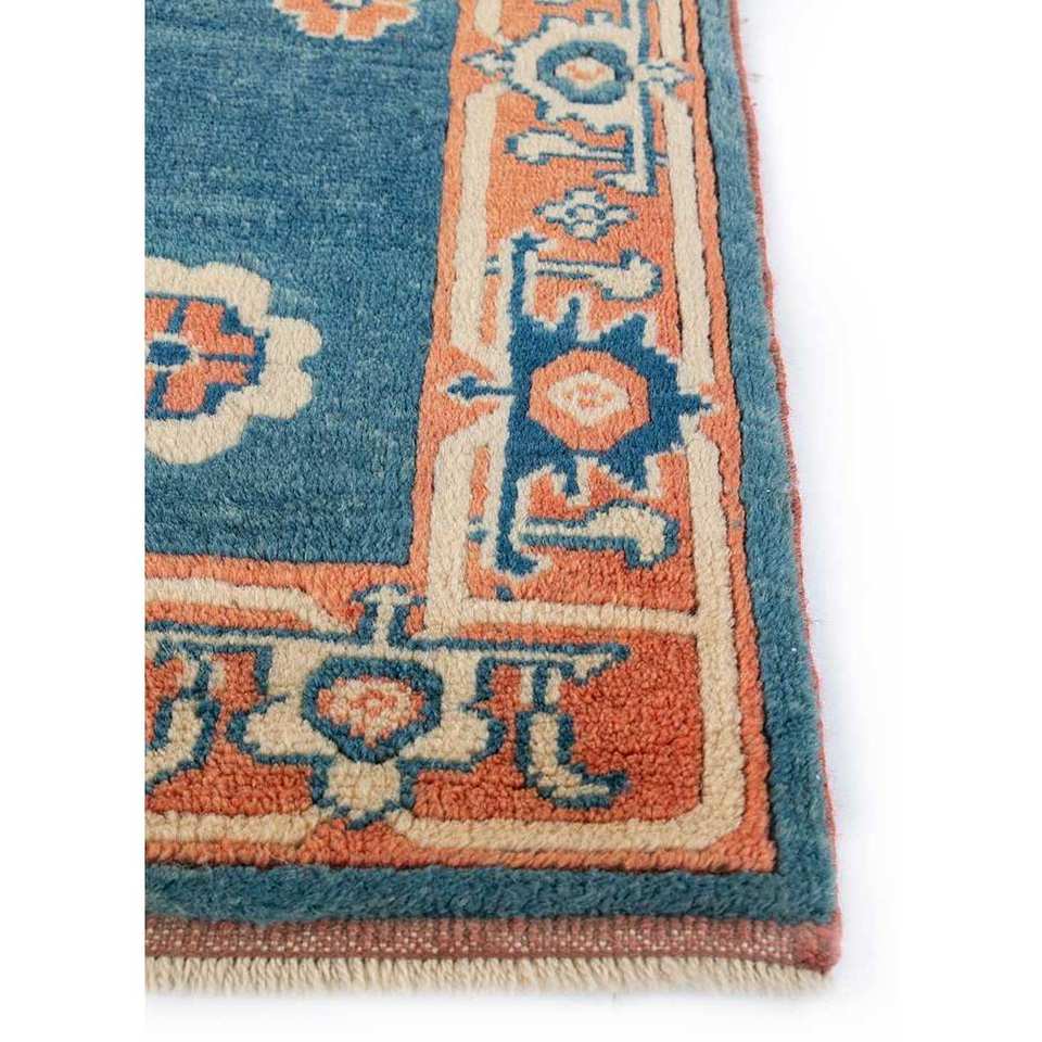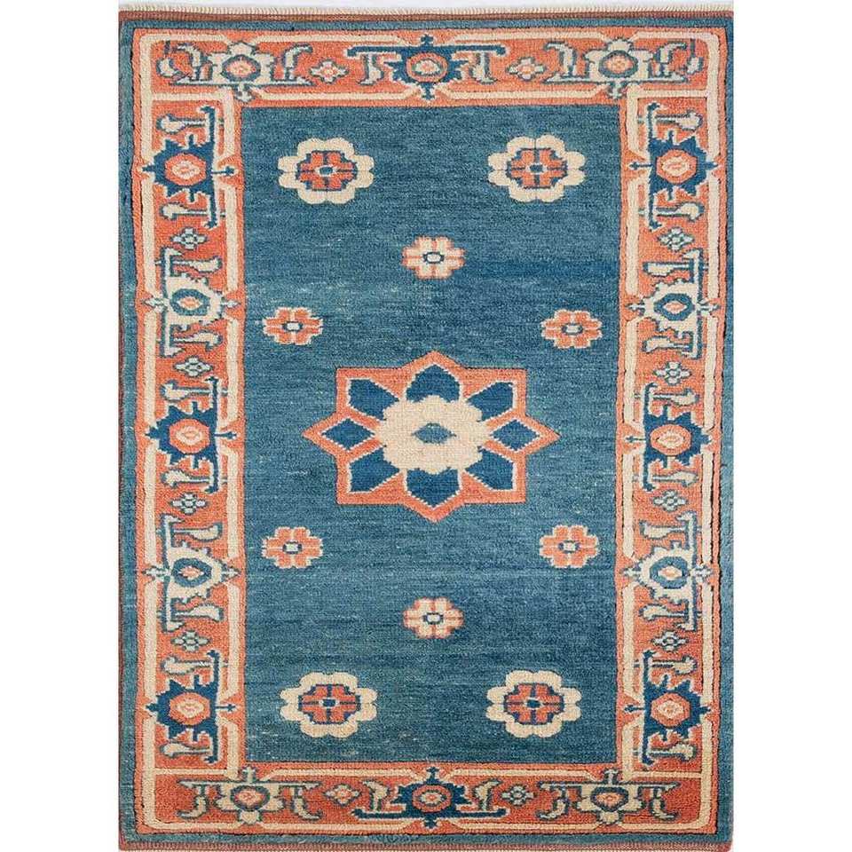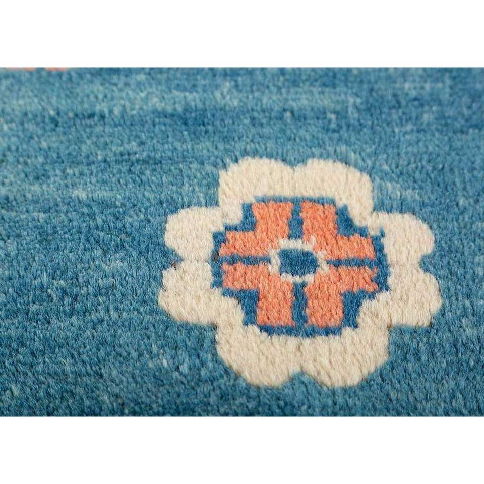 Alfombra de Lana Anudada a Mano Nuray Azul Pae-1155 9x12 Rectangular con Patrón de Medallón para Decoración de Sala de Estar o Uso en Pasillos