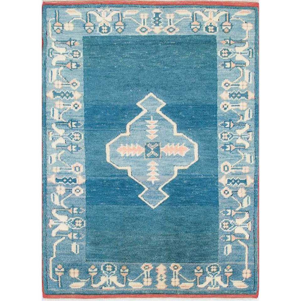 Alfombra de Lana Anudada a Mano Nuray Azul Pae-1156 9x12 Rectangular con Patrón de Medallón para Decoración de Sala de Estar o Uso en Pasillos