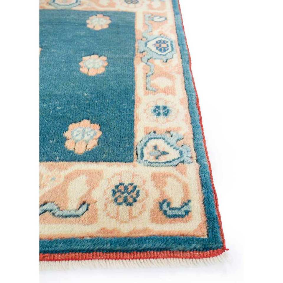 Alfombra de Lana Anudada a Mano Nuray Azul, Modelo Pae-1245, Grande, para Sala de Estar, Dormitorio, Pasillo, Diseño Abstracto Rectangular, Hecha a Mano