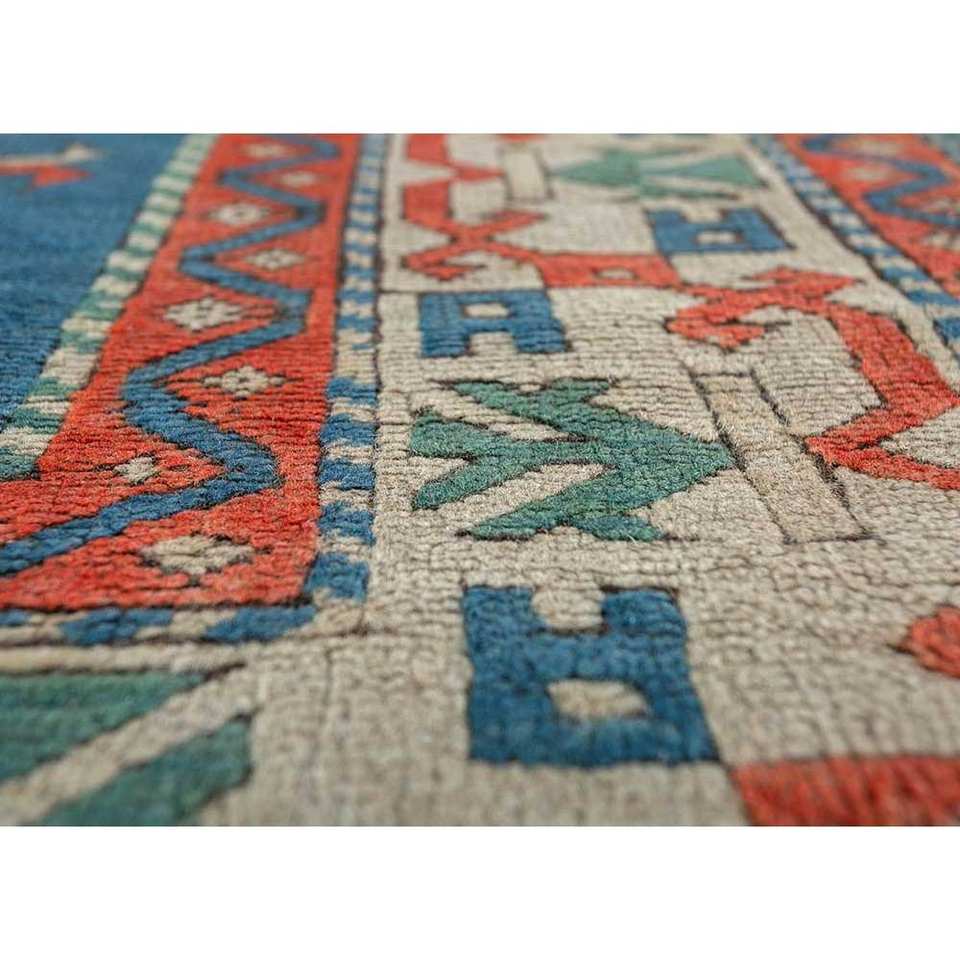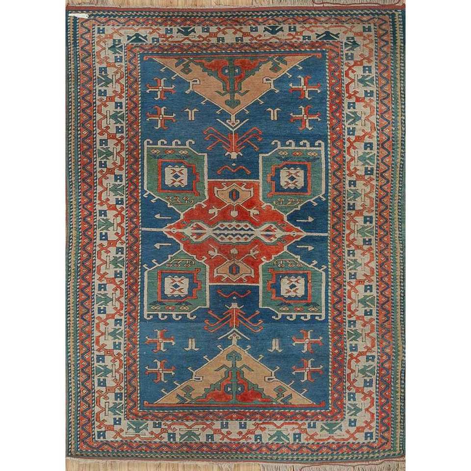 Alfombras de Lana Anudadas a Mano Nuray Blue, Alfombra Geométrica Clásica de Gran Tamaño para Sala de Estar, Pasillo, Rectángulo de Diamantes para Adolescentes