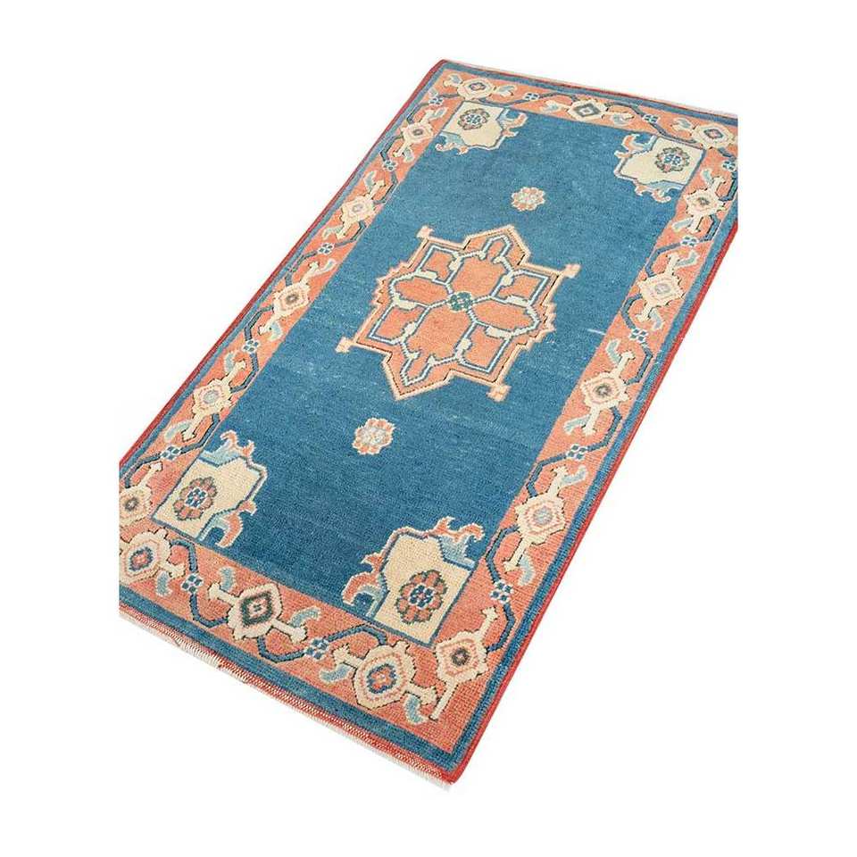 Alfombras de Lana Anudadas a Mano Nuray Blue, Diseños Clásicos de Medallones y Abstractos para Uso Doméstico, para Sala de Estar o Habitación de Adolescentes